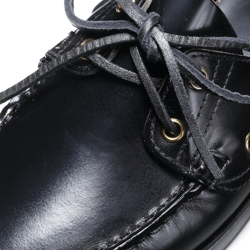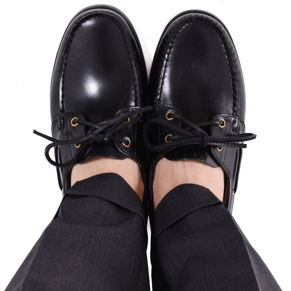 ・アッパーには美しい光沢が特徴のガラスレザーを採用。水にも強いという機能性を併せ持っており、デッキシューズの由来とも合致するストーリーが秀逸です。