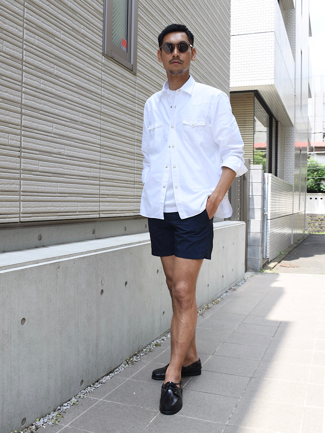艶やかなガラスレザーにゴールドハトメパーツがとても上品な印象を醸すこちらのデッキシューズ。本来船の甲板(デッキ)で使用する為に作られたシューズで、大半が都会には不向きな物が多いイメージでしたが、こちらは非常に都会的な仕上がりに!綺麗目なスタイリングにこちらを着用すると、ほんのり抜け感ある足元に!普段、足のサイズは28.0cmでサイズ9を着用しジャストサイズでした。