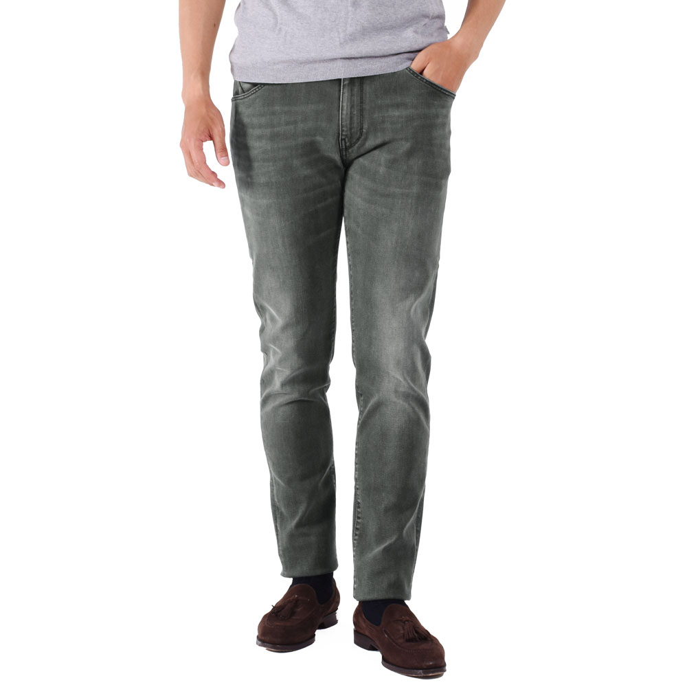 ・生地は通年穿けるくらいの厚みで極めて高いストレッチ性を実現!グレーデニムと呼べる程度に加工されており、こなれ感が漂います。
