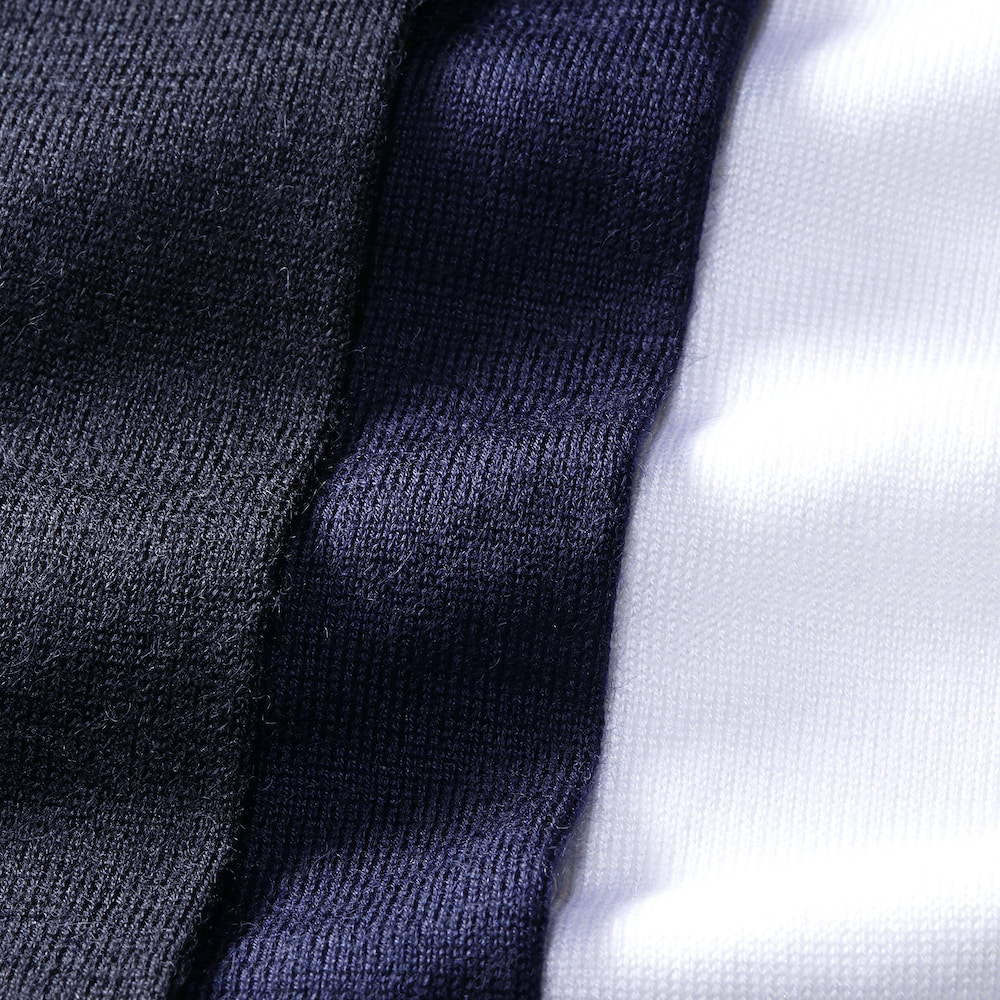・多くのブランドからシルカシニットは出ていますがその多くは後染め。こちらは先染めゆえの品のよい発色が特徴です。