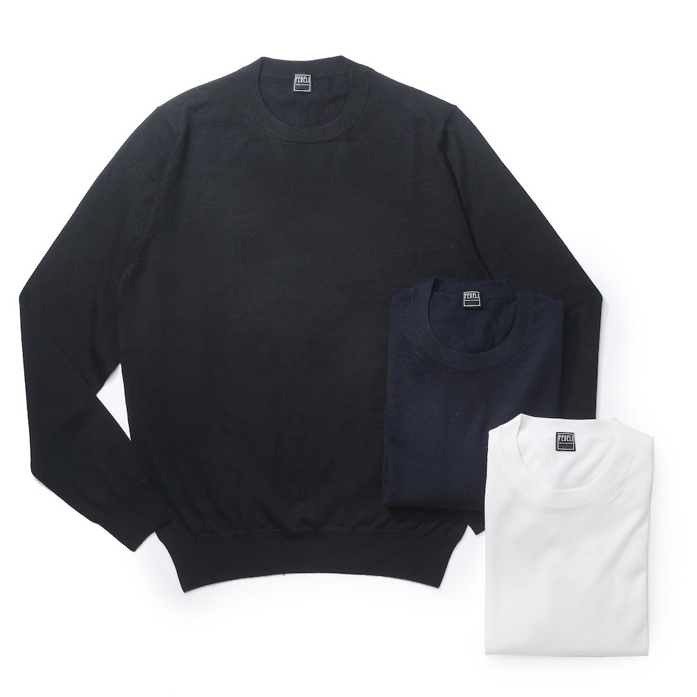 ・秋冬の「FEDELI(フェデリ)」と言えばカシミアですが、オールシーズン着られるシルカシニットも今シーズンはラインナップ。ハイゲージゆえ薄くて軽いので、冷房対策で携帯するのにもピッタリ。ビデオ会議映りも良く、クルマ移動の方は常備しておけば便利。そして実にラグジュアリーです。