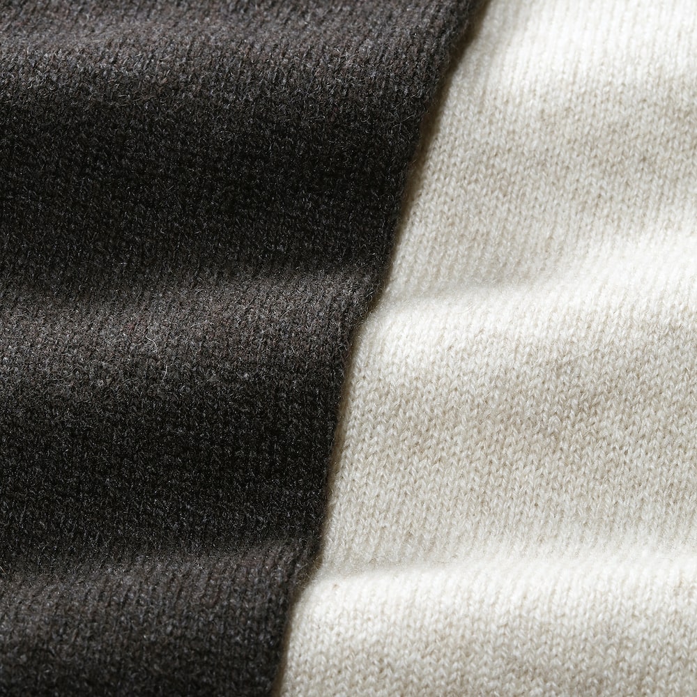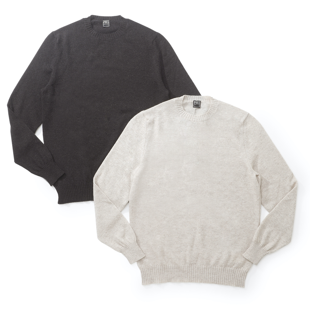 ・ニットの名門「FEDELI (フェデリ)」が使うカシミアはカシミアの中でも純度が高いものに限られます。そのカシミアから自社で糸を作り、プレーンに編み上げた一着。また「FEDELI (フェデリ)」ではカシミア原毛を色によって使い分けています。ホワイト原毛は薄い色目、ブラウン原毛は濃い色目に分けて製品染めすることで、鮮やかで深みある色合いを実現。
