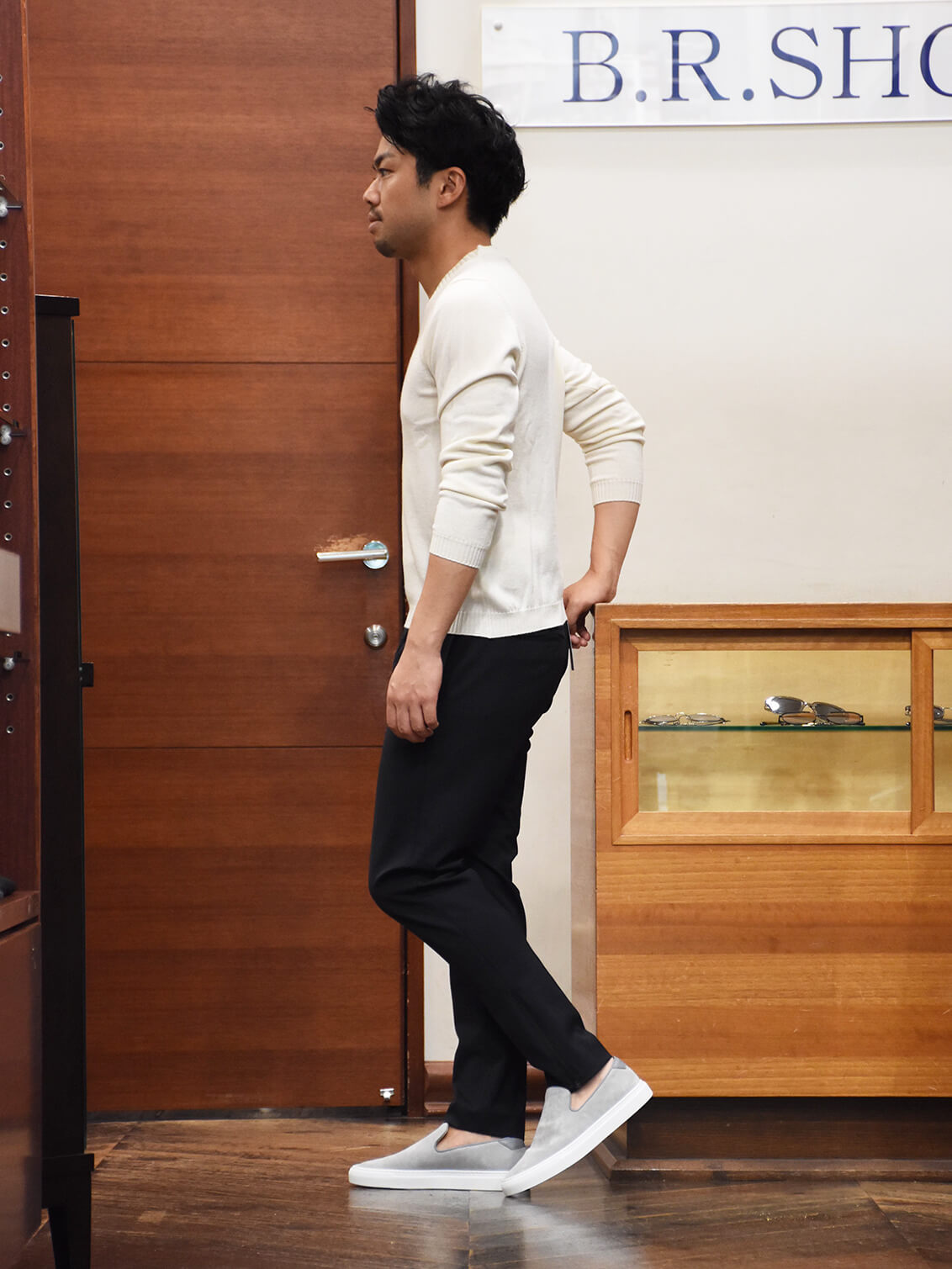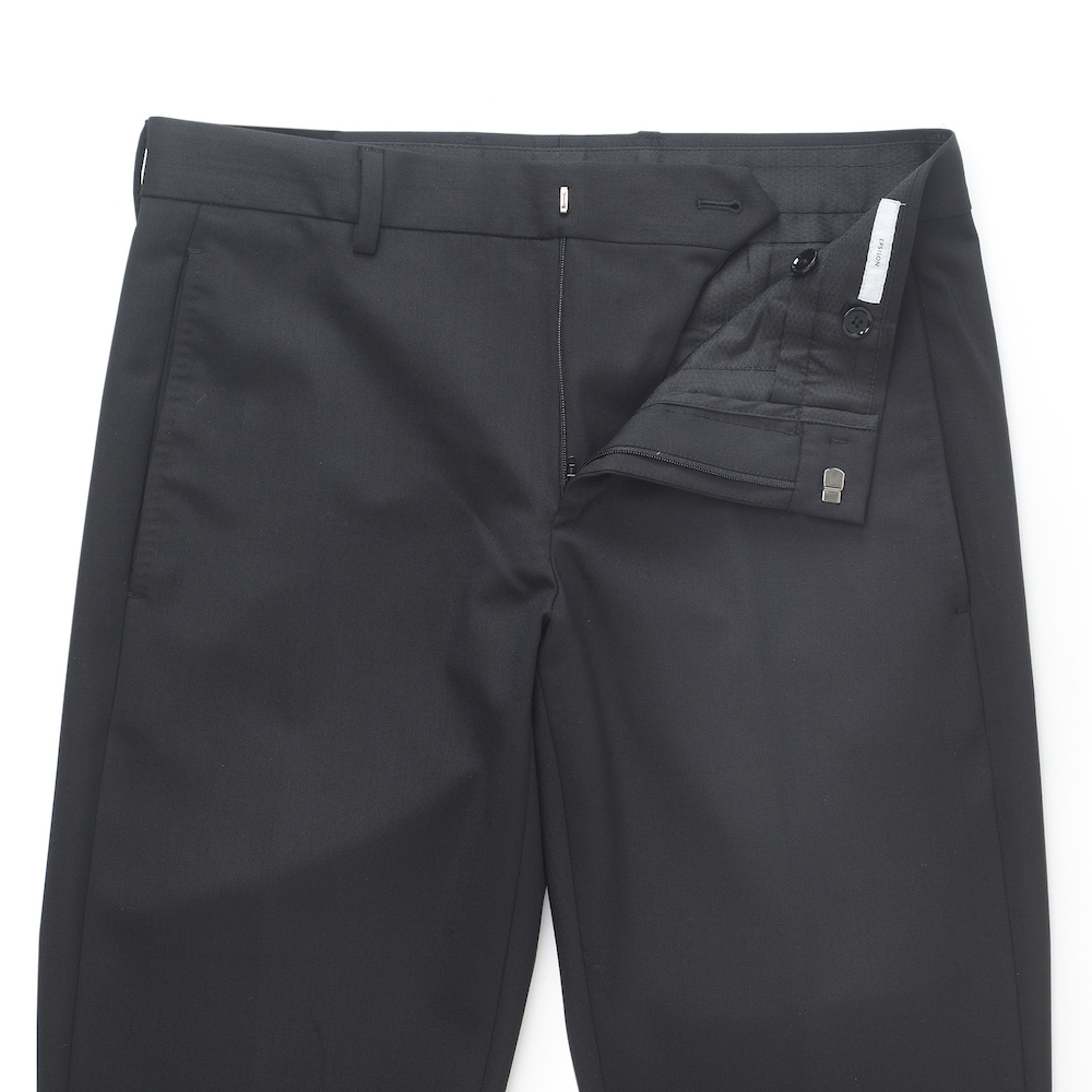 ・ノープリーツで適度に取られた股上、「PT TORINO(ピーティートリノ)」の特徴であるスッキリと切れ上がったヒップラインと計算されたテーパードラインはそのままに、さりげなく取り付けられたスソZIPによってスポーティ且つモードな雰囲気を醸します。