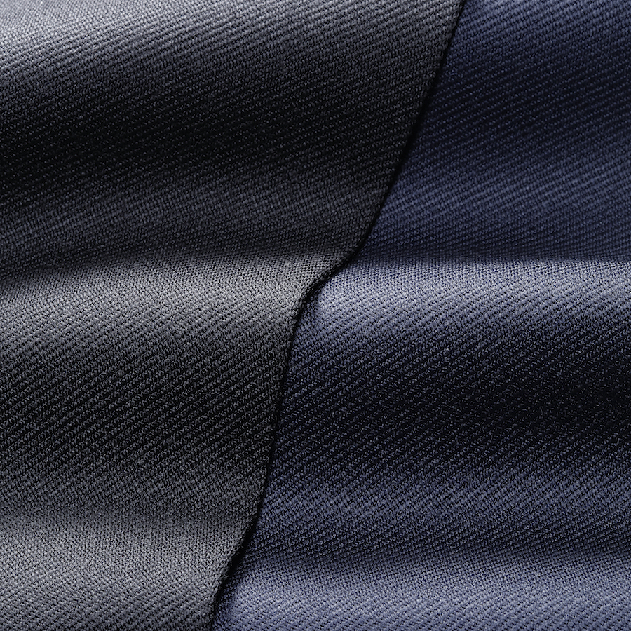 ・ウール100%の生地は、綾目と光沢感が美しく、打ち込みの良いコシが特徴。目付430グラムとしっかりとしているので落ち感があり綺麗にシルエットが出ます。