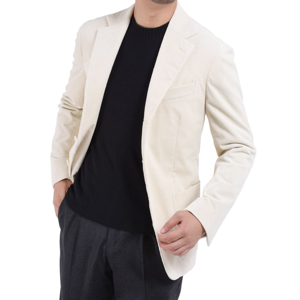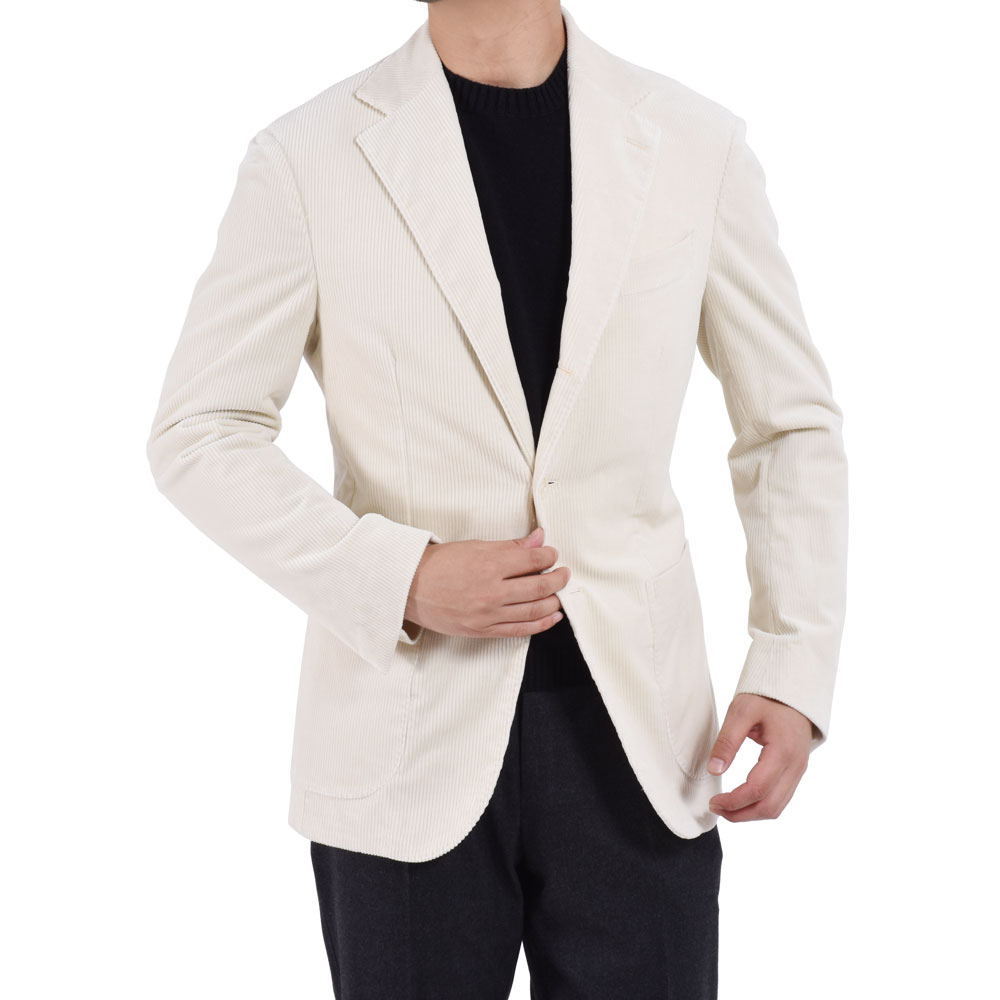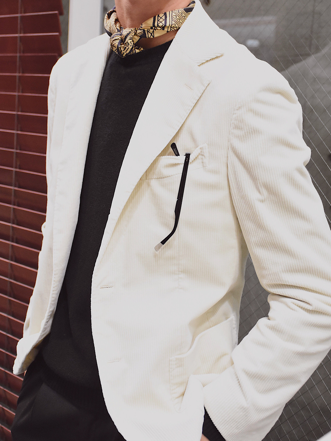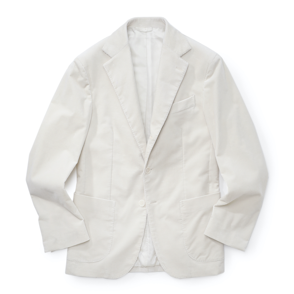 ウィンターホワイトというコーディネートには間違いなくピッタリなホワイトコーデュロイジャケット。サラリとした肌触りやオフホワイトならではの柔らかみある発色が非常に上品な印象です。コーデュロイならではのずっしりとした生地感ですが、ほんのりストレッチが効いているので着心地が楽でした!明るいトーンでまとめていただくのも良いですし、モノトーンスタイルで仕上げて頂くのも非常にカッコいいでしょう!細身体型でサイズ46を着用しジャストサイズでした。