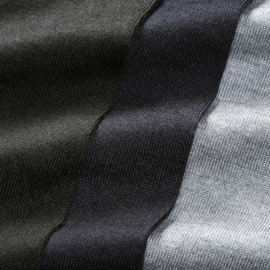 ・温暖化が進む中、ハイゲージのシルカシニットは出番が多くなるはず。オールシーズン着られて、薄手で軽いのでレイヤードや携帯するのにもピッタリ。ビデオ会議映りも良く、クルマ移動の方は常備しておけば出番も多いでしょう。全5色をラインナップ。同じ編み地でタートルネックもご用意しました。