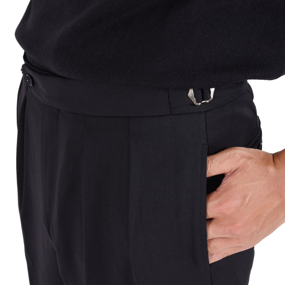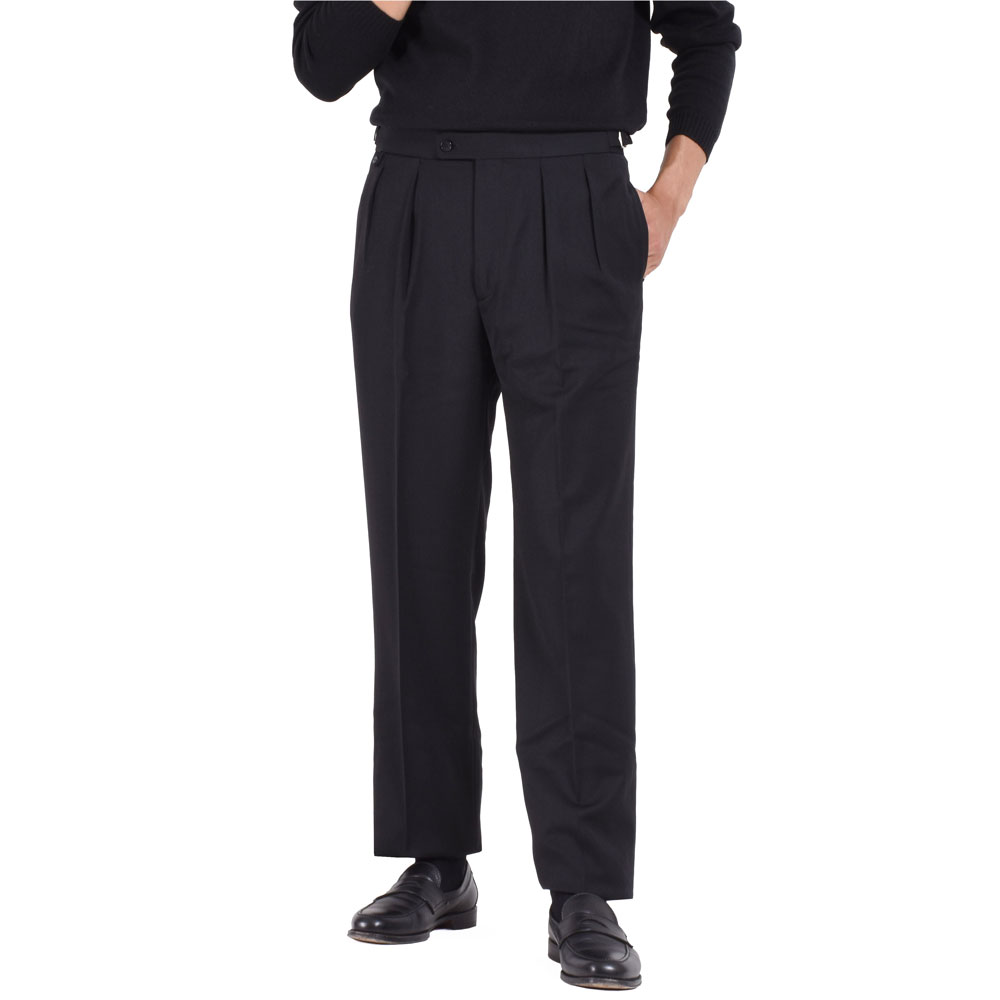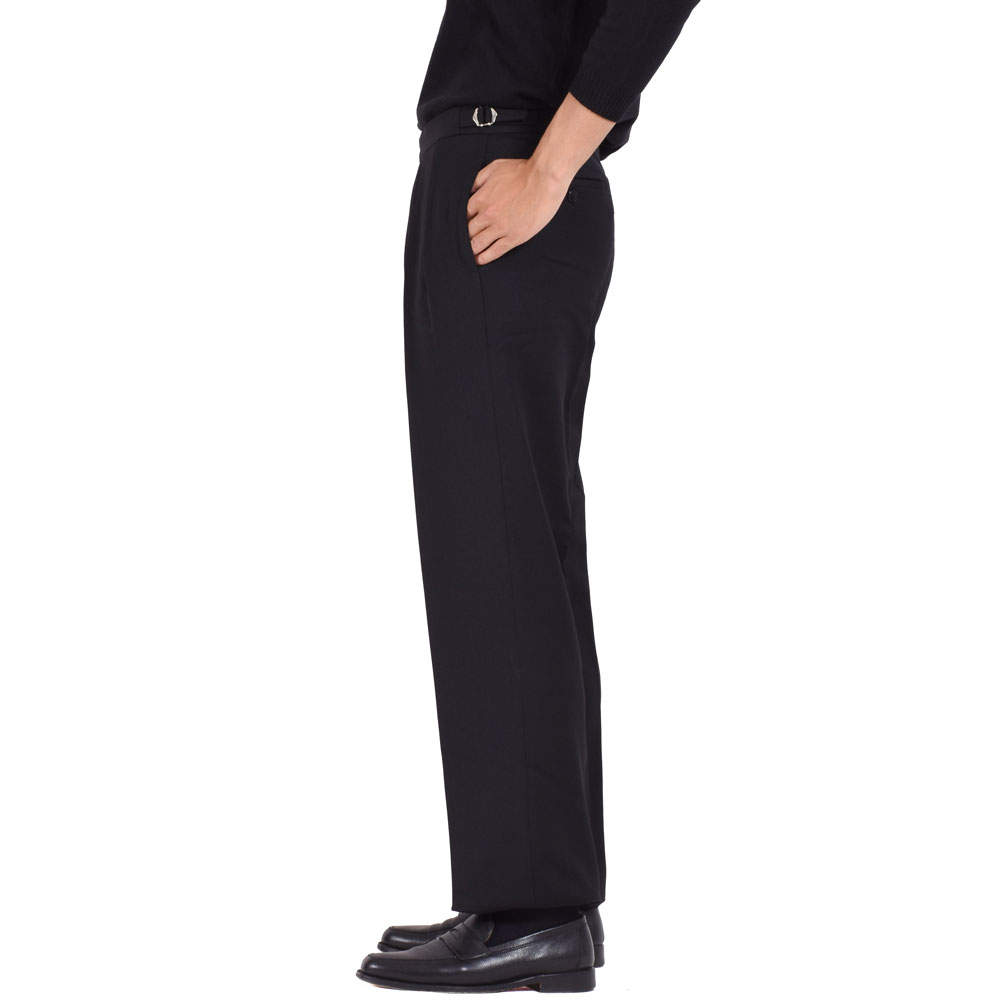 ・フランスを代表するパンツブランド「BERNARD ZINS(ベルナール ザンス)」がBR初登場!生地を多く使う贅沢な仕立て、センタークリースラインが真っ直ぐに落ちてドレープ感が味わえるエレガントなシルエット、立体的な腰廻りの仕立てによって生まれるしっかりと生地が載った美しいヒップライン、がモデルBACの特徴であり、ZINSの持ち味が存分に感じられる一本です。