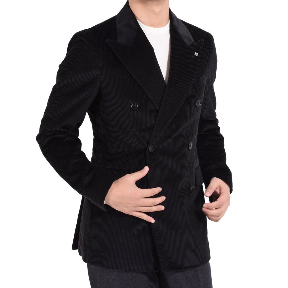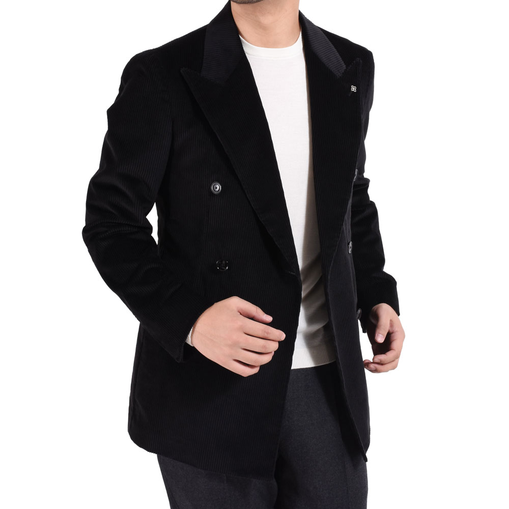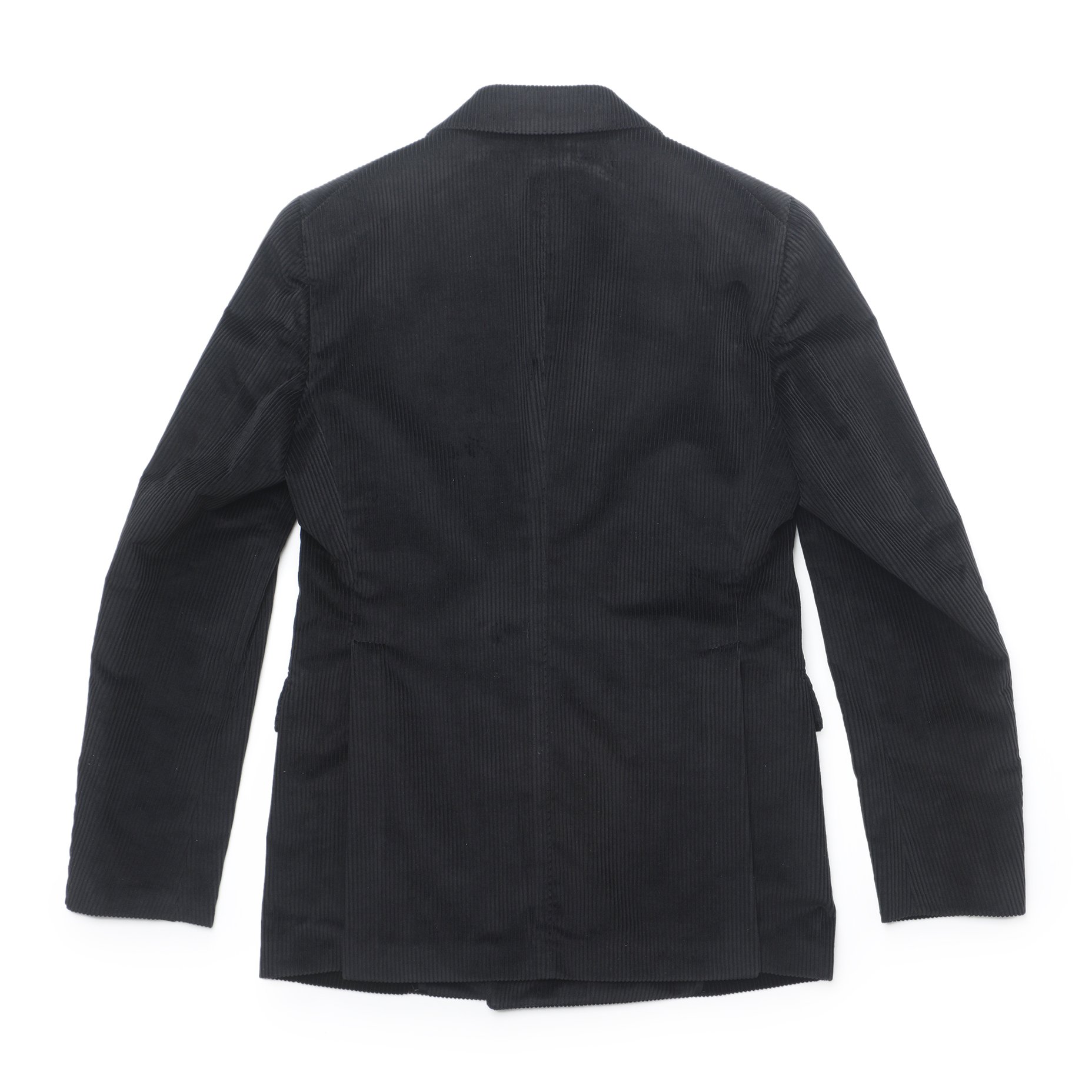 ・モードなムードを活かすべくBRがセレクトしたのはブラックコーデュロイ。黒という色合いによってモードなデザインが引き立てられるだけではなく、カシミア混なのでラグジュアリー感もプラスされています。目付は325グラム。袖ボタンは通常と異なり5個づつ付けられるようになっており、ディテールにも抜かりはありません。