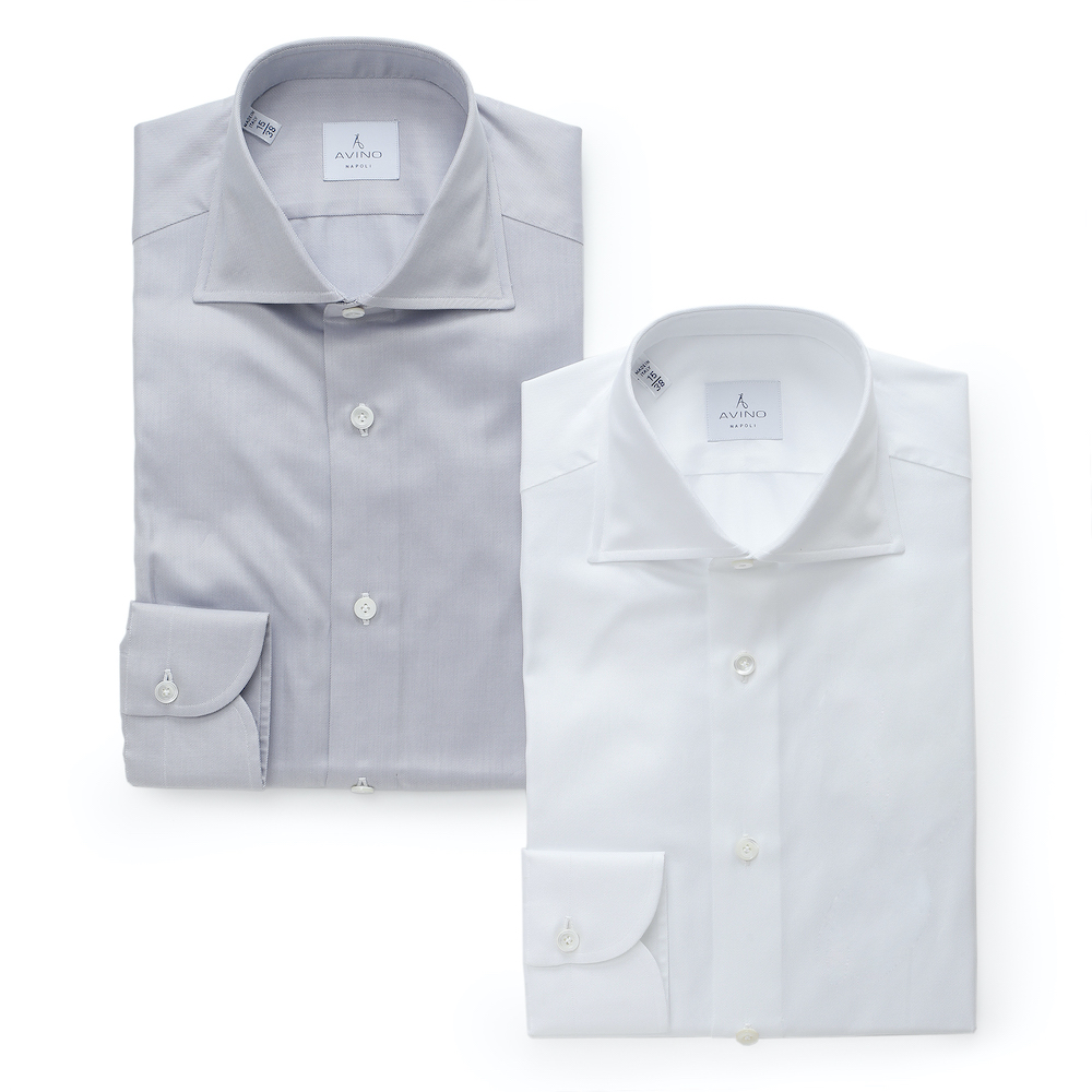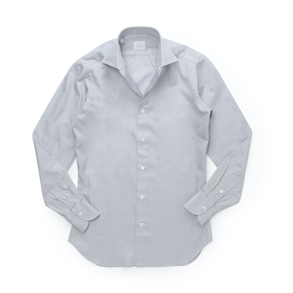 ・豊富なバリエーションを誇る「AVINO Laboratorio Napoletano(アヴィーノ・ラボラトリオ・ナポレターノ)」の襟型の中から、襟の大きさ、開きの角度などを吟味し、現代的に見えるワイドカラー"C30"をセレクト。また、ソフトな芯地、ラウンドのカフス、ボタンの形状をB.R.SHOPが指定してオーダーしています。