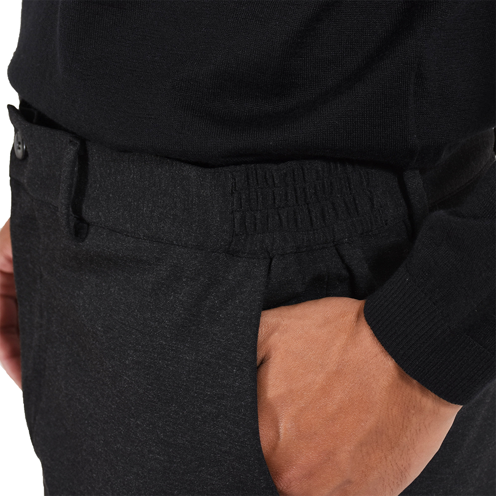 ・股上はやや浅め。両サイドウエストにシャーリングゴムが入ることによってウエストに沿う腰廻りを実現しています。