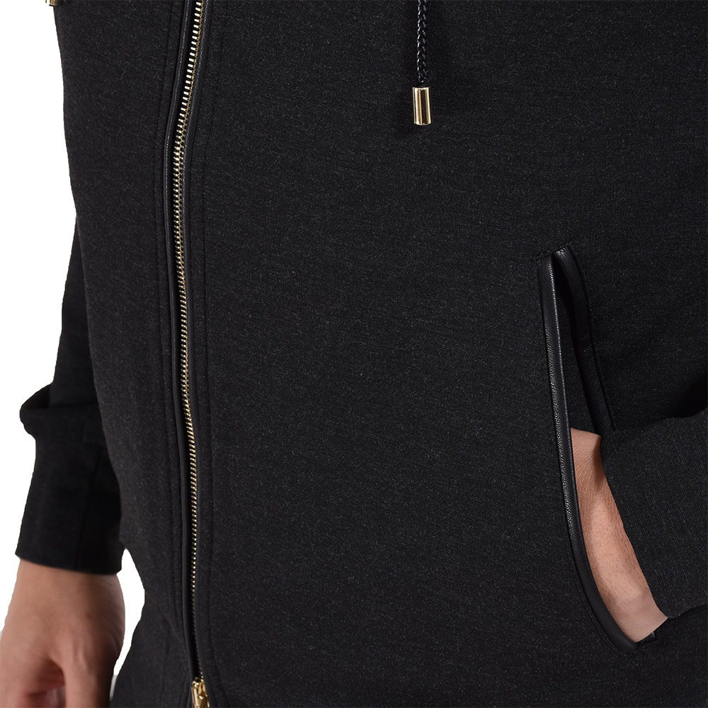 ・フード紐が通るハトメパーツ、フード紐のエンドパーツ、フロントジップをゴールドに。