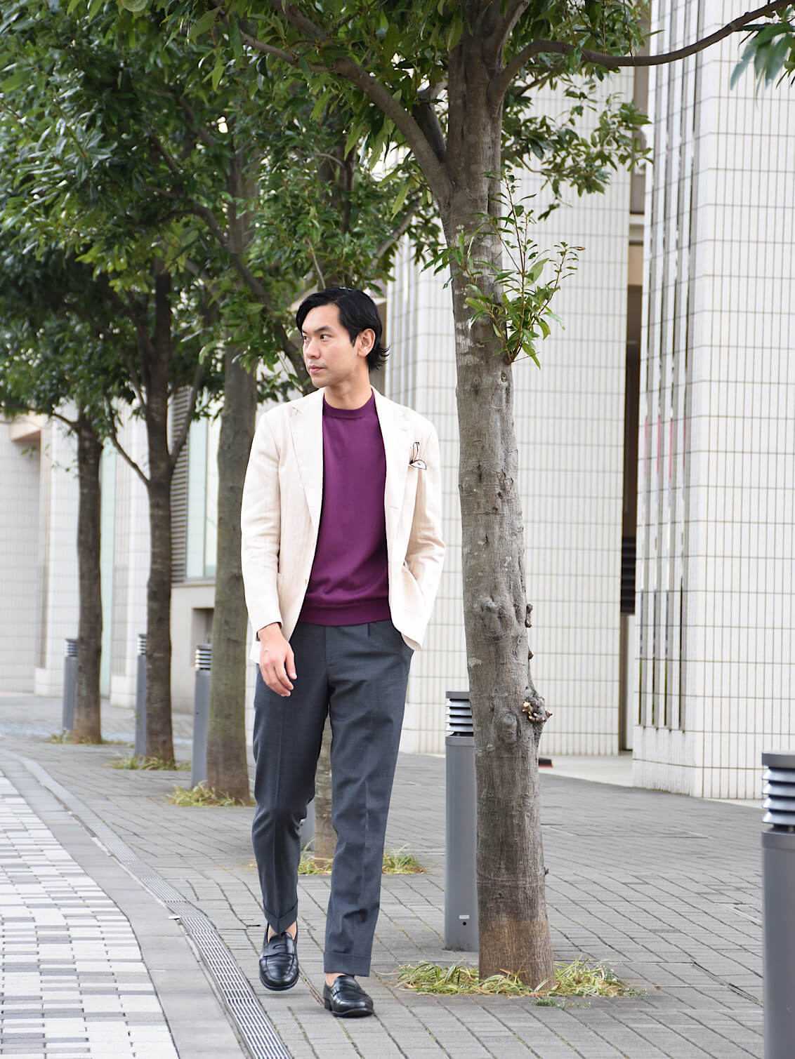 2021春夏もBR別注セッテフィーリカシミアが登場です!今季もシルエットやリブのバランスをBR流に仕上げました。編み地はスウェット風のコットンで、ジャケットのインナー使いはもちろん、カジュアルスタイルにも合う一着に。ほんのりゆとりのあるフィッティングですがリブの締まりがしっかりあるので、メリハリ感のある印象を作ってくれます。Tシャツより上品であり、差別化を図れるニットTは大人男性にお勧めの一着です。