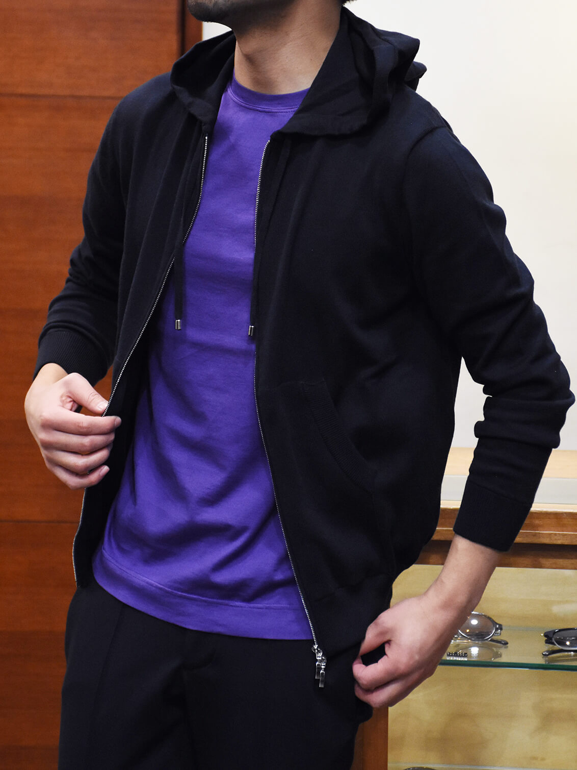 スポーティーとリラックス感を味わえるニットパーカー。個人的に今ワードローブに増やしたいアイテムの一つです。カットソーの上から羽織るだけでサマになるのはニット地を使用しているからです!スウェット地の様にカジュアル過ぎず、ニット地ならではの大人の上品さを醸します。大人のパーカーと言えるでしょう。