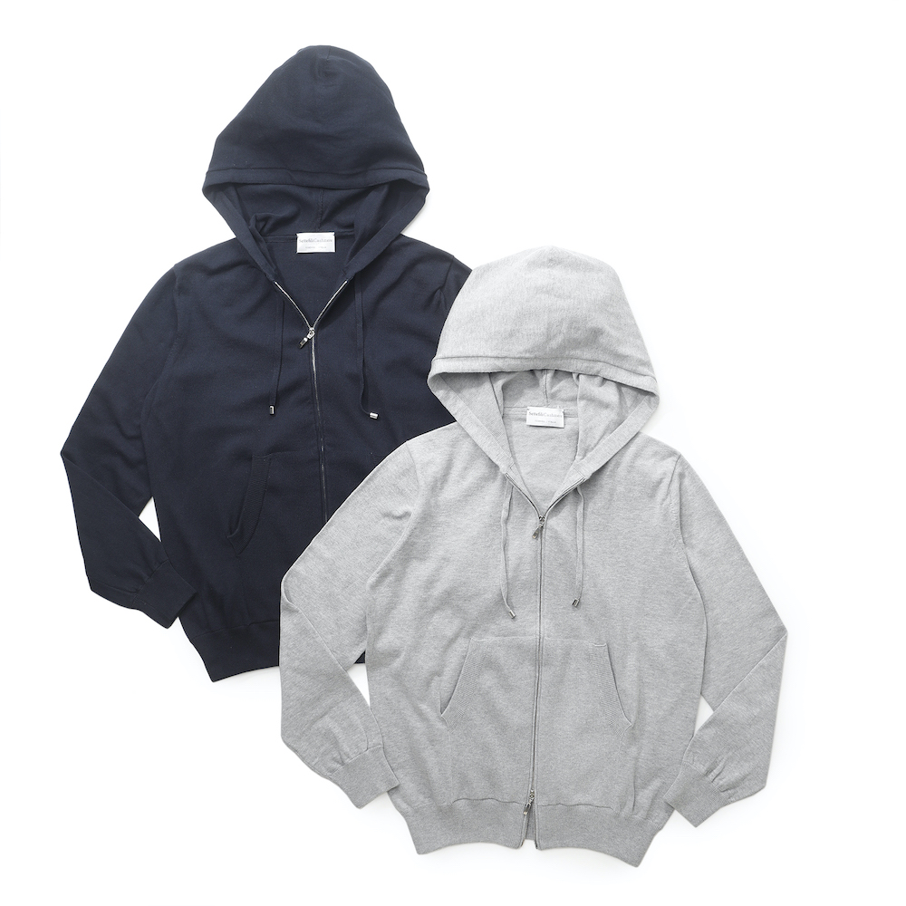・目の詰まったカジュアル感ある風合いから通称"スウェット風編み地"と呼ばれ、着れば極上のリラックスムードを醸す今の時代感にピッタリな編み地です。その編み地を使ったパーカーはニットならではの品の良さも備えたスタンダードでリラックス感あるシルエット。ベーシックな4色をラインナップしました。