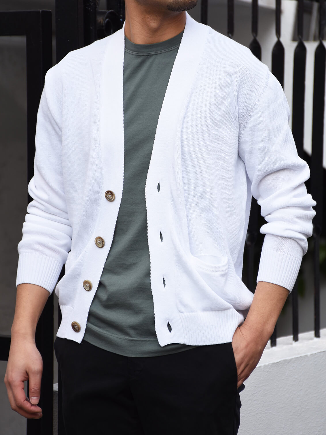 ・気張らずにちょっと一枚羽織っていたい、という時にピッタリなカーディガン。ニットの名門「FEDELI(フェデリ)」が手掛けるそれは、今の時流に沿った”ちょいユル”シルエットゆえに、ほどよく抜け感が漂う一着です。