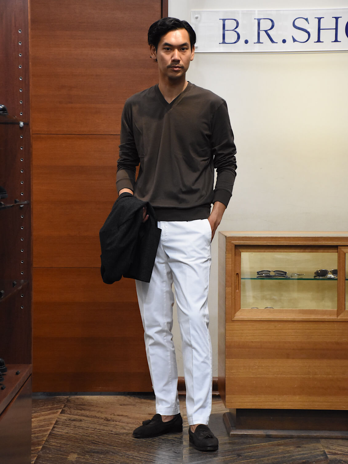 ・BRの「FEDELI (フェデリ)」はブランドタグも別注。ブラックベースのタグはモダンな雰囲気を醸します。