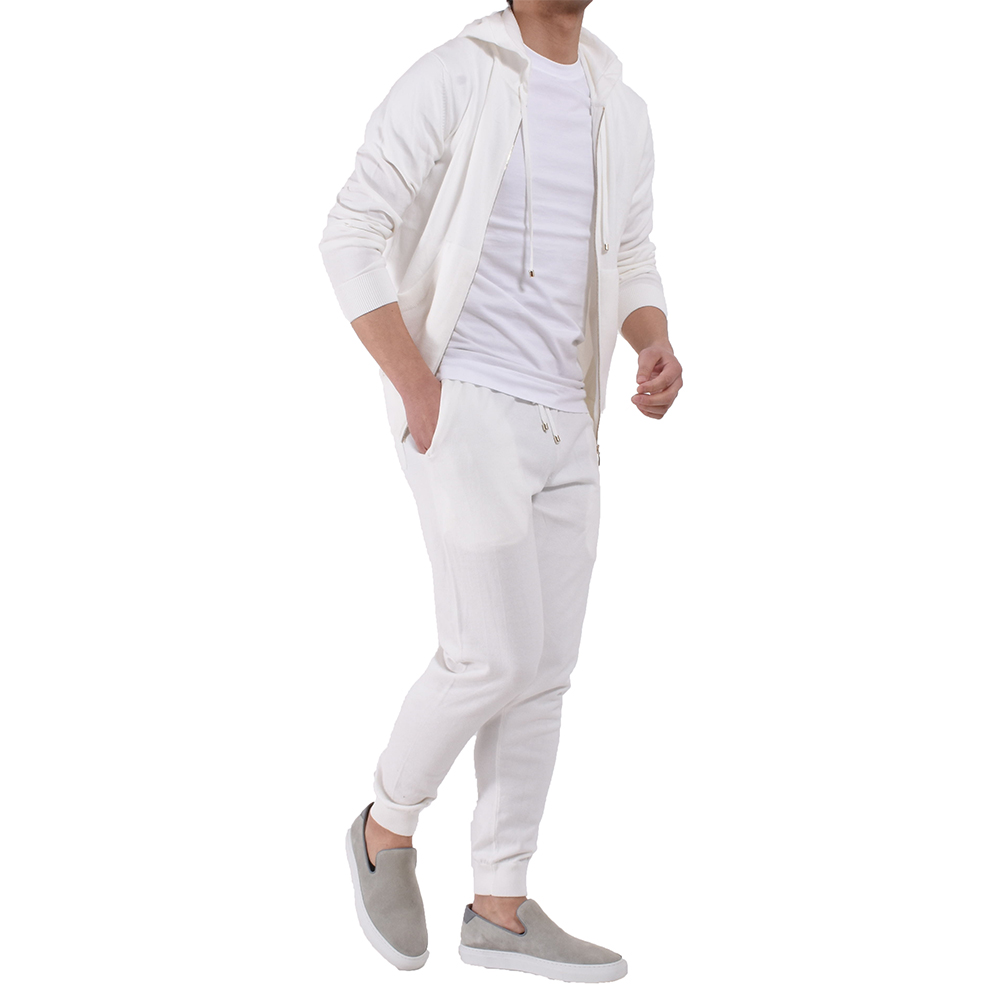・同じ編み地で、クルーネック、Vネック、半袖クルーネック、パーカー、ショーツもラインナップ!トップス4型、ボトムズ2型を組み合わせて、自由にセットアップを楽しめます。