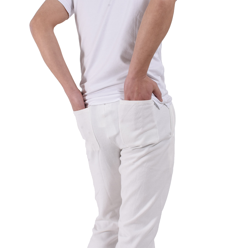 ・イマドキ感あるスポーティな見た目にするために裾にリブを付け、手ぶらで外出しやすいように後ろポケットを一つ追加し二つにした、というのが別注ポイント。ポケットの深さ等にもこだわり、大きめなケイタイでも入るよう設定しています。