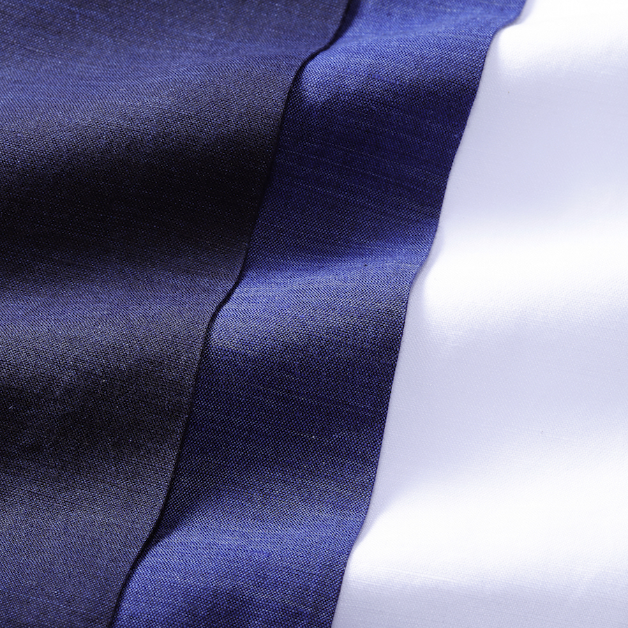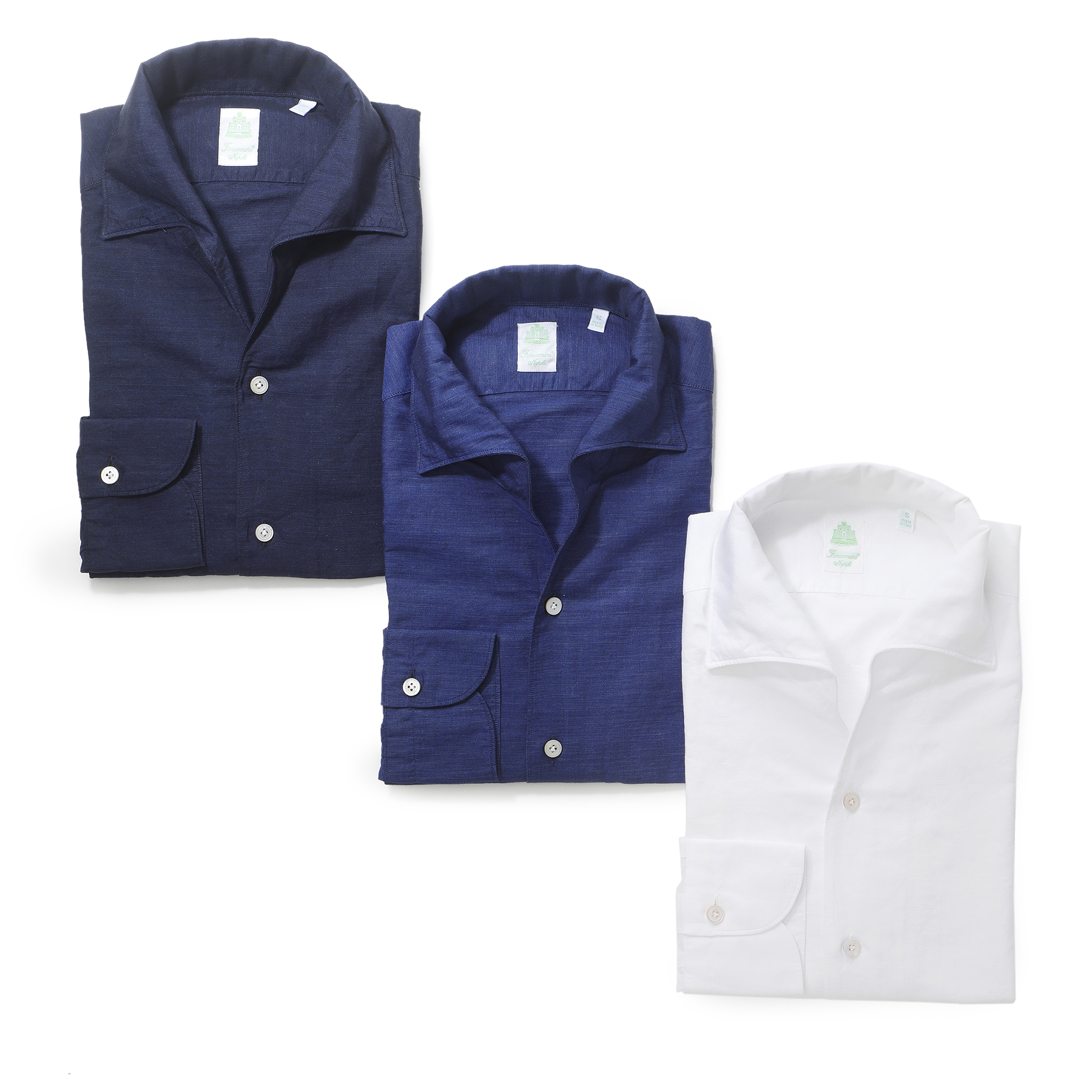 ・生地は「Finamore (フィナモレ)」春夏シーズンの定番であるコットン&リネン。夏の陽射しに映えるホワイトやブルー系、そしてきちんとしたレストランにも着ていけるダークカラーを含め全5色をラインナップしました。製品洗いゆえのこなれ感もお楽しみ頂けます。