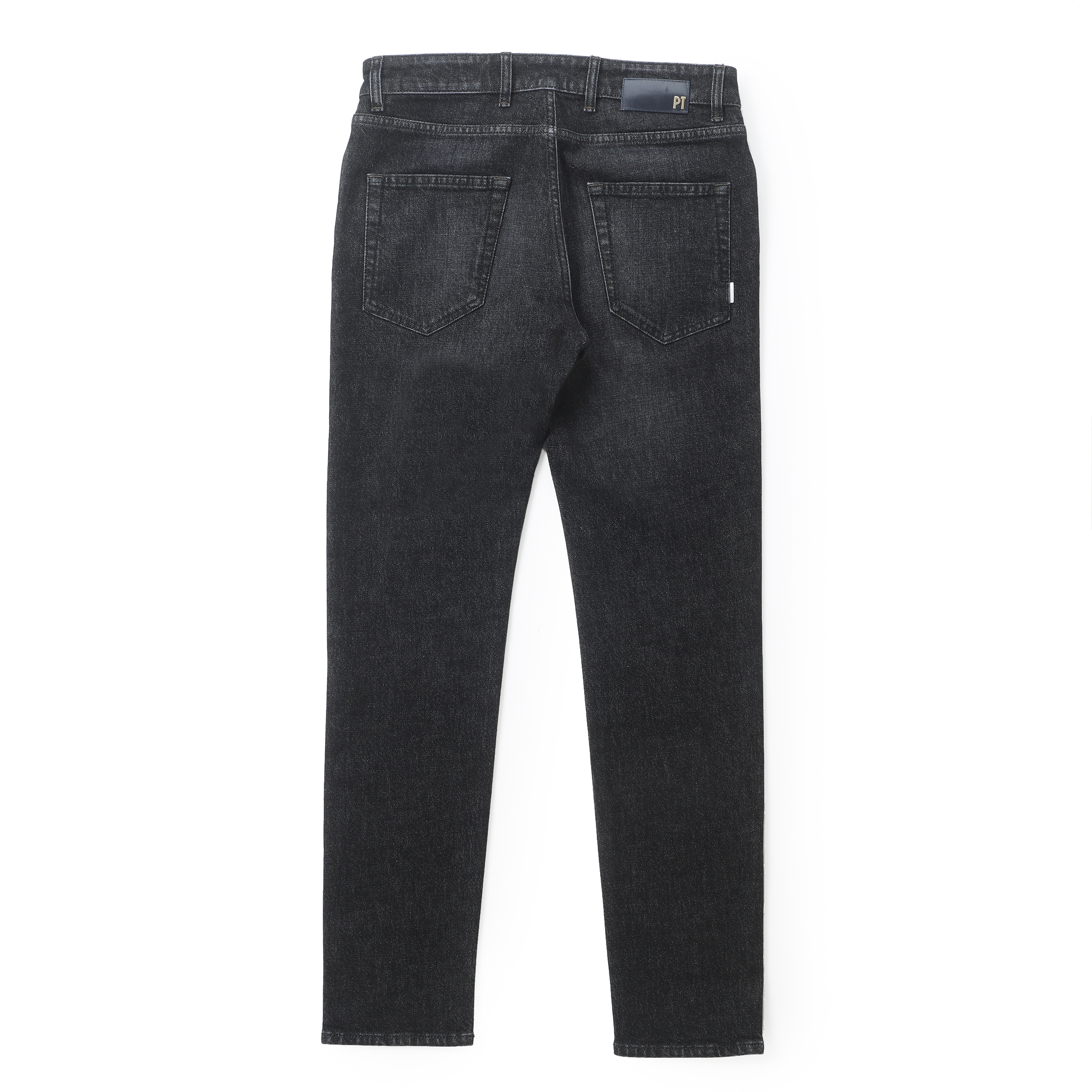 販売しては即完を繰り返し、前代未聞のデニムパンツの予約受注販売も行ったPTブラックデニムが更なる進化を果たして、BR別注ゴールドパーツとして新登場致しました!PTブラックデニムの勢いはまだまだ止まりませんね!ゴールドパーツを施した箇所は、ジップやボタン、そしてレザーパッチにPTのゴールド文字が入っており、ストイックな印象のブラックデニムにラグジュアリーな要素をプラス。トップスを着用していた場合はゴールドパーツは見えませんが、チラッと覗いた時にアクセントになります。シルエットはモデルSWINGよりも細身になっております。また、僕も通常モデルのモデルROCKを所持しているのですが、スッキリとしたシルエットを演出してくれます!そして、ストレッチが効いているので細身なのに窮屈感は一切ございません!車や自転車の運転はもちろん、お座敷などでもノンストレスで穿けるパンツに。裾上げのお直しをする場合は、裾口のアタリをそのまま活かす、裾残し挟み込み仕上げをお勧め致します。