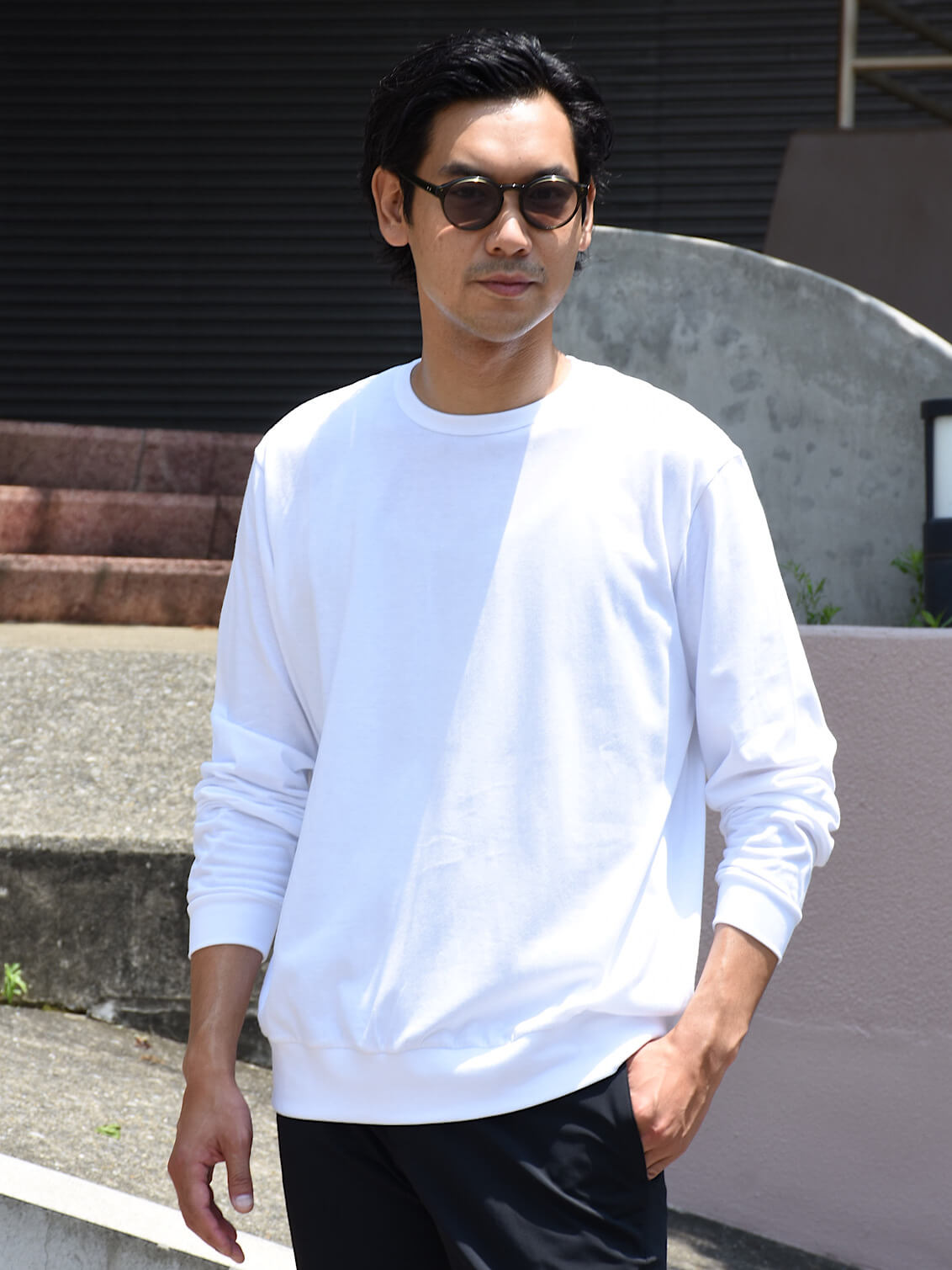 クリアフレームで季節感ある印象のこちらのサングラス。軽やかな装いに合わせやすいバランスに。男性の方はもちろん、女性の方にも掛けて頂きたい一本です。