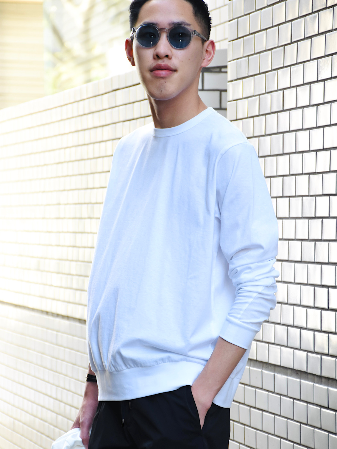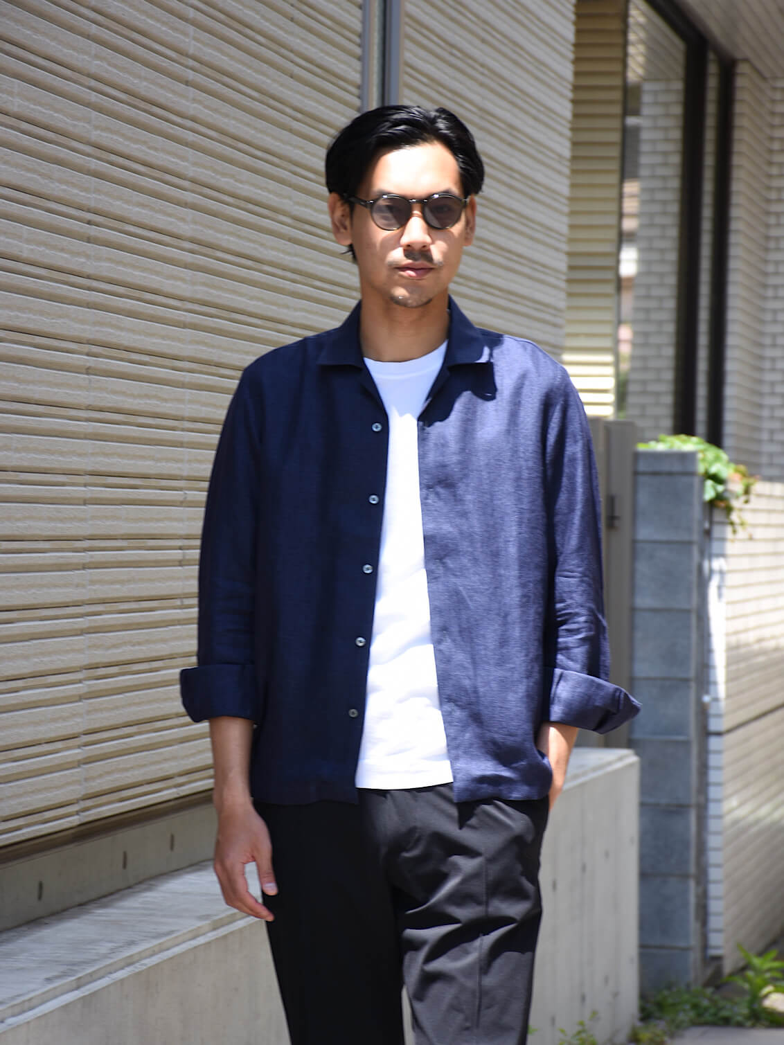 ・顔馴染みの良いボストンタイプのフレーム。それに対してレンズの形状はラウンド、というところが特徴的。さらにセミフラットレンズを採用することで、クラシックとモードが上手く融合されたスタイリッシュな雰囲気に仕上げられています。