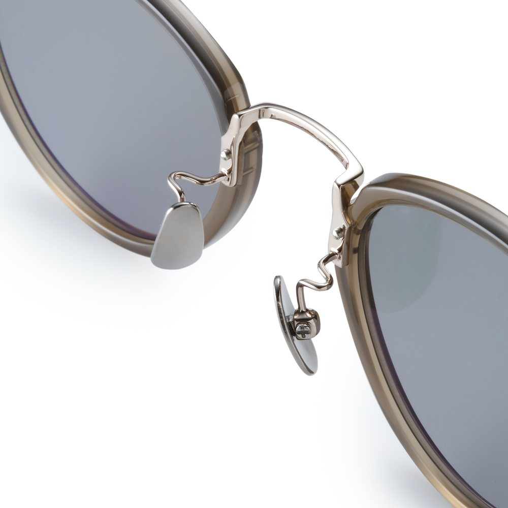 チタンとプラスチックがコンビとなった、こちらのサングラス。ほんのりクラシックな雰囲気がありつつも、モダンな一本です。