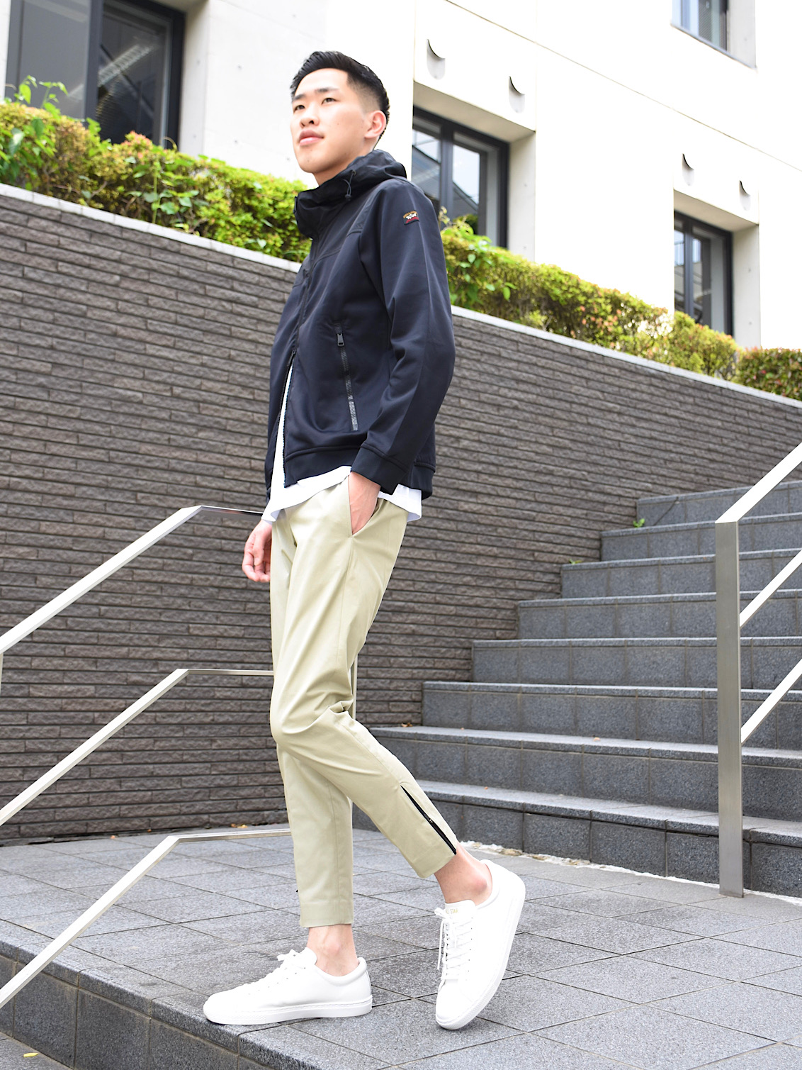 スナップ写真のスタッフは身長183センチ/体重61キロで、着用サイズ44です。