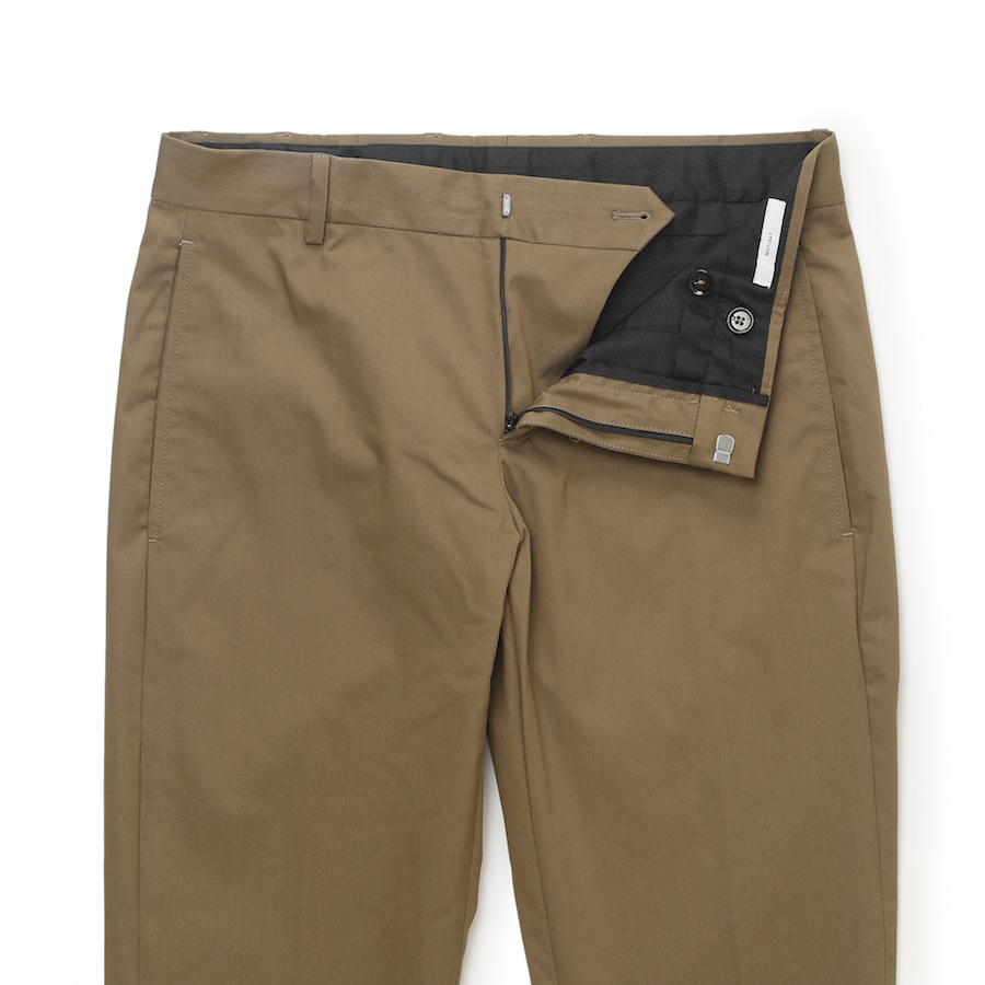 ・生地は”TECHNO COTTON GABARDINE”と名付けられたコットンとナイロンをブレンドし、ストレッチ性を持たせたもの。ドライタッチなので湿度が高い時期でも快適!ご自宅でケア出来るのも気が利いています。全3色をラインナップ。