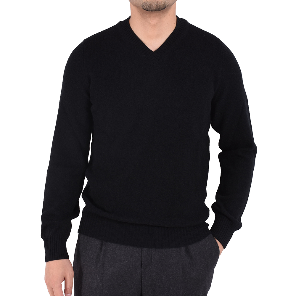 ・Vネック部分のリブ幅は細めでモダンな印象を与え、軽快に一枚でも着こなせる深さです。ベーシックから挿し色まで全7色をラインナップ。同じ編み地で、クルーネック、タートルネック、ジップアップもご用意しています。
