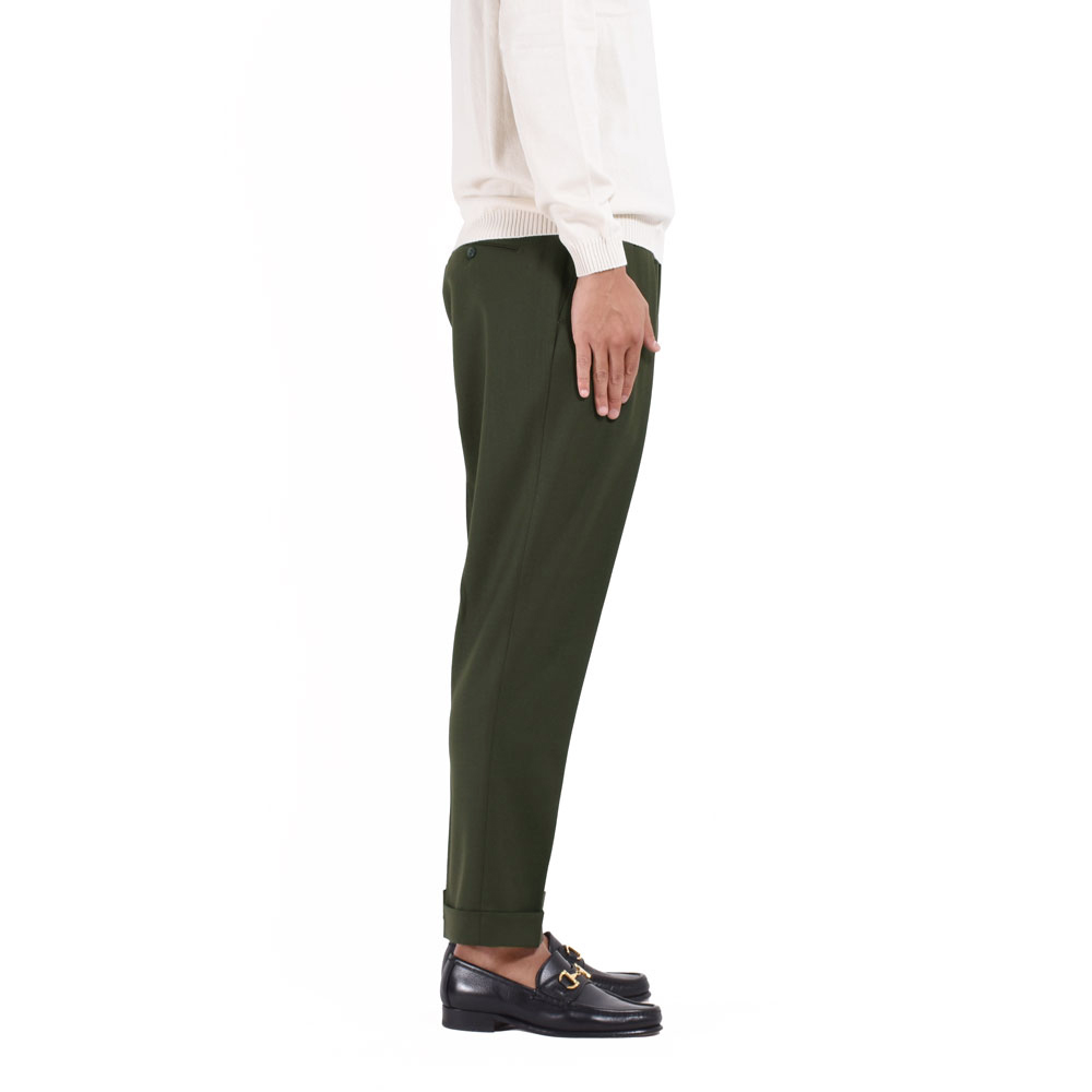 ・イタリアは”BONOTTO(ボノット)”社の生地を採用。プレーンなウールに見えるものの、ポリエステル比率が53%あるため、ご自宅でもケアできる機能素材。ほぼオールシーズン穿ける生地感、高いストレッチ性とくっきりとした発色も特徴です。全4色をラインナップ。