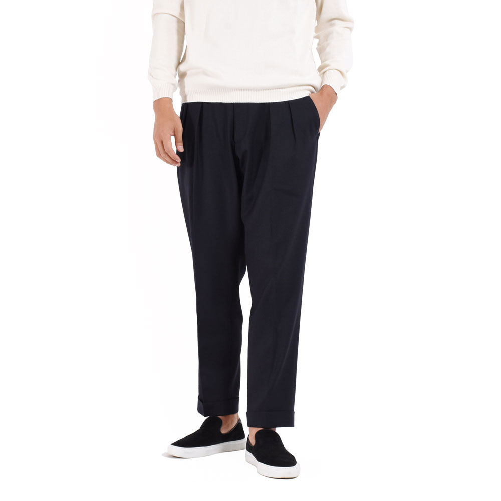 2プリーツが入っているため腰回りやワタリがリラックス感あるこちらの”SCOTCH”。インプリーツというところがミソ。インプリーツにすることによって、より丸みを帯びた特徴的なシルエットに仕上げています。裾にかけては絶妙にテーパードがかかっており、全体としてかなり洒落感のある印象です!