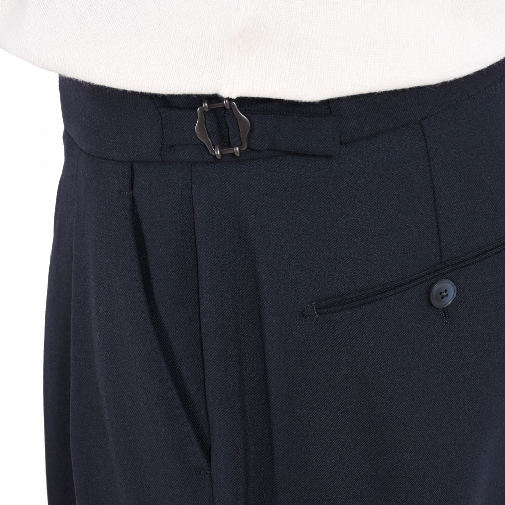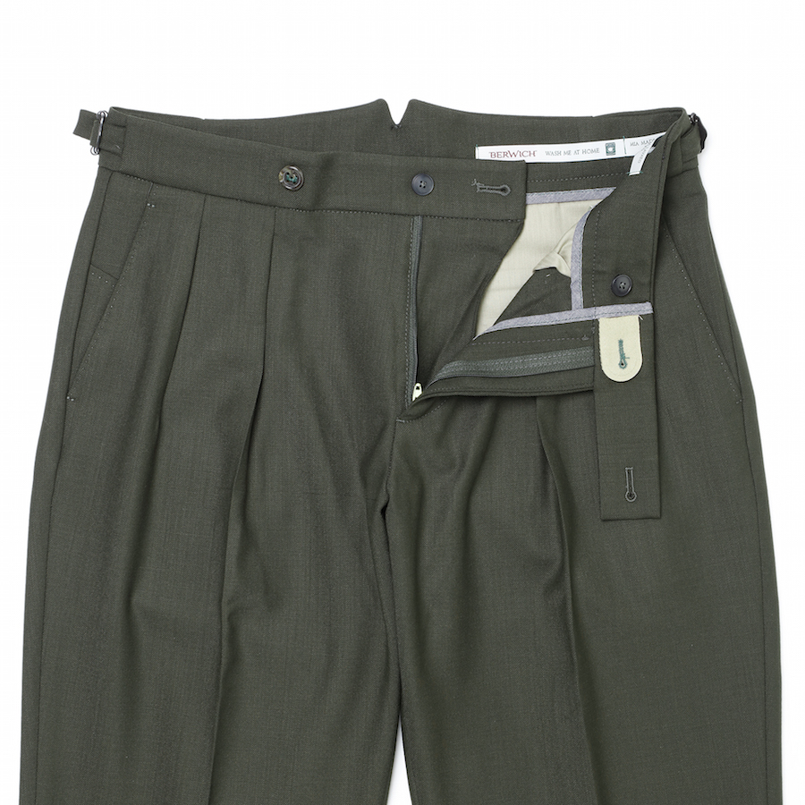 ・グルカパンツがモチーフとなっている"scotch(スコッチ)"。特徴的なデザインはサイドアジャスター、2インプリーツ、そしてハイバック。フロント持ち出しの長さは控えめにすることでクラシカル過ぎない見え方に。