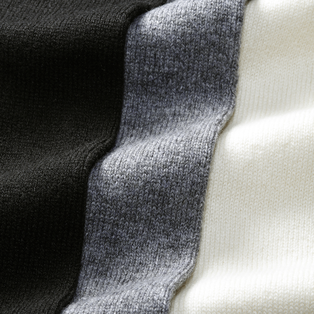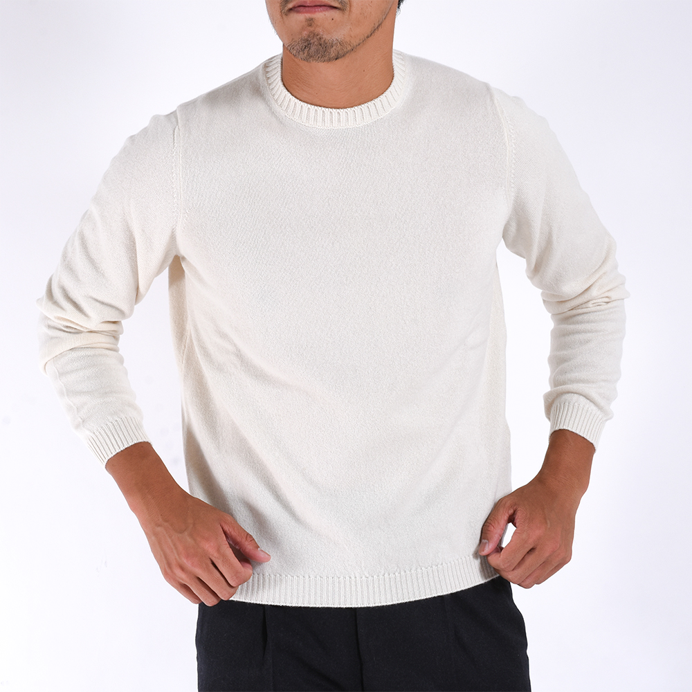 身巾に、少しゆとりがありますが、緩さというよりは素材を活かしたエレガントな表情で大人の男性に相応しいニットです。