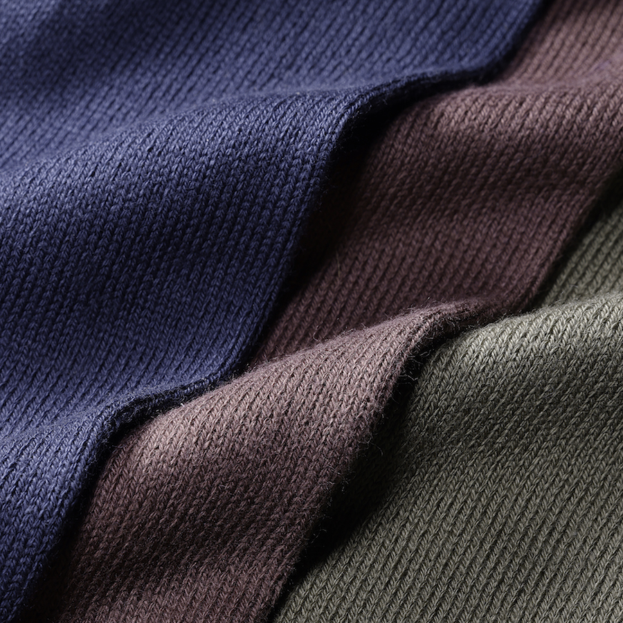 ・ラインナップは全10色。同じ編み地で、Vネック、半袖クルーネック、そしてジップアップパーカーもご用意しました。
