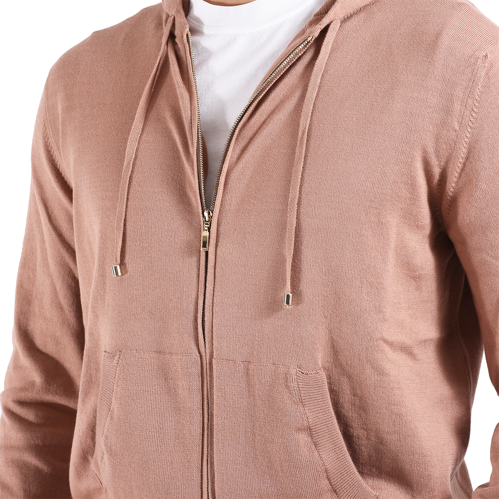 ・目の詰まったカジュアル感ある風合いから通称"スウェット風編み地"と呼ばれ、着れば極上のリラックスムードを醸す今の時代感にピッタリな編み地です。その編み地を使ったパーカーはニットならではの品の良さも備えたスタンダードでリラックス感あるシルエット。