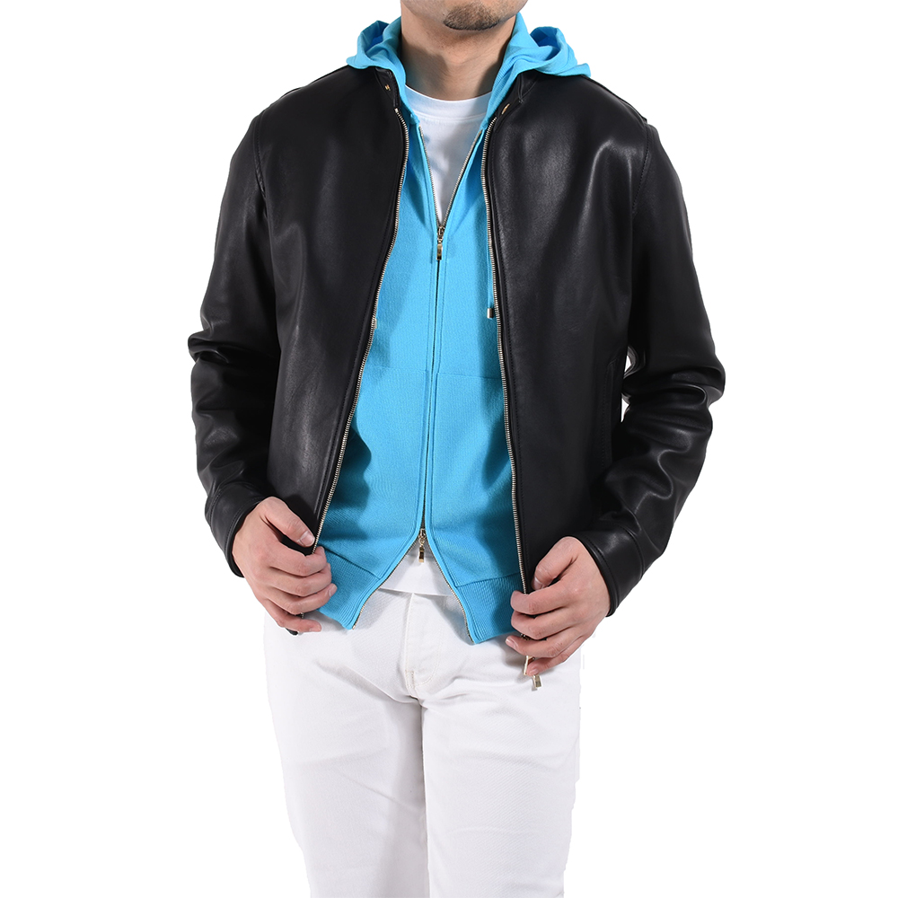 サイズ44を着用。細すぎず緩すぎずなフィッティングでジャストサイズでした。ちょうど良い厚さの生地になりますので、時にはブルゾンやコート、レザーライダースなどのインナー使いでもお勧めです。