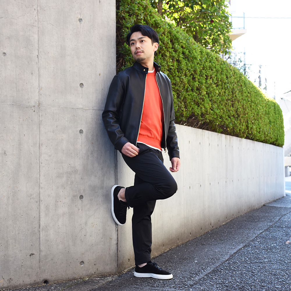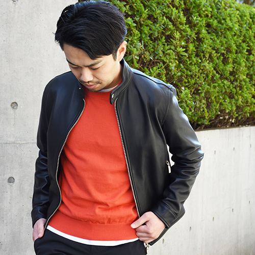 ・ライダースならではのハードさも良いものですが、その印象を絶妙な具合に薄めることで、室内で着やすくなったり、デスクワークがしやすくなったり、とジャケット代わりに着ること多くなった今の時代感に合わせつつ、ラグジュアリー感のあるBR別注を実現しました。