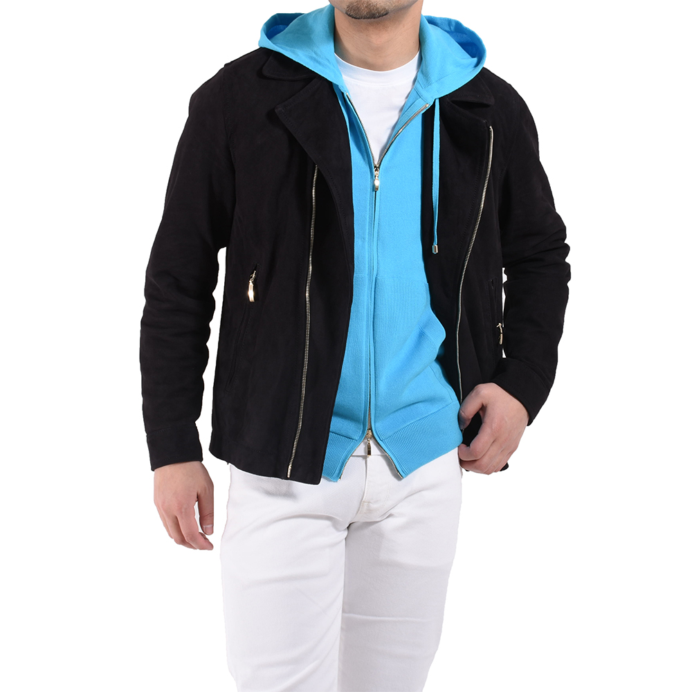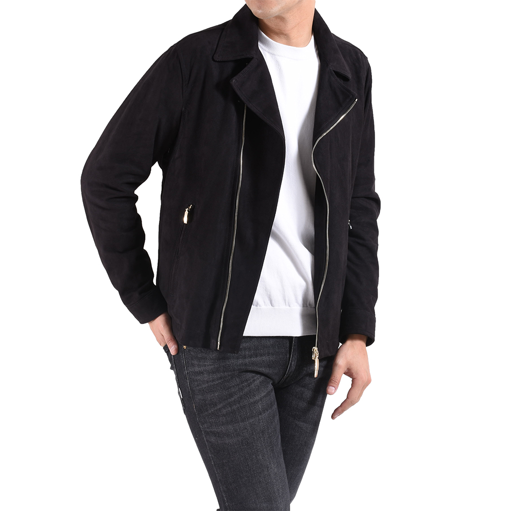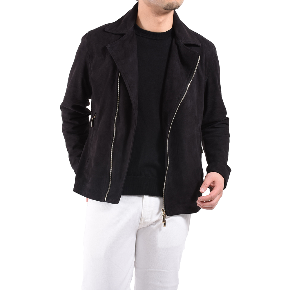 サイズ50を着用。細過ぎず緩過ぎずのナチュラルなフィッティングでジャストサイズでした。スウェードゆえしなやかな着心地ですので長時間着てても非常にラクです。