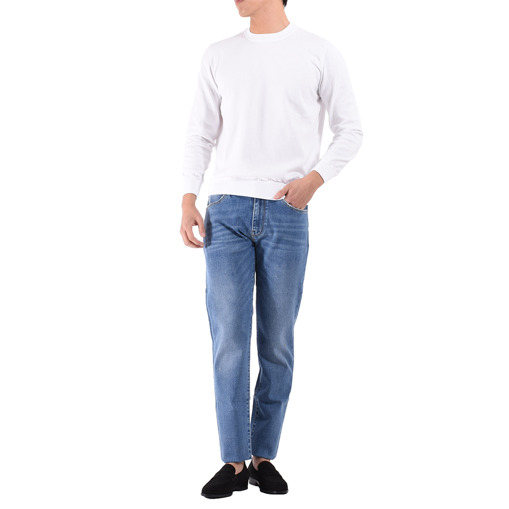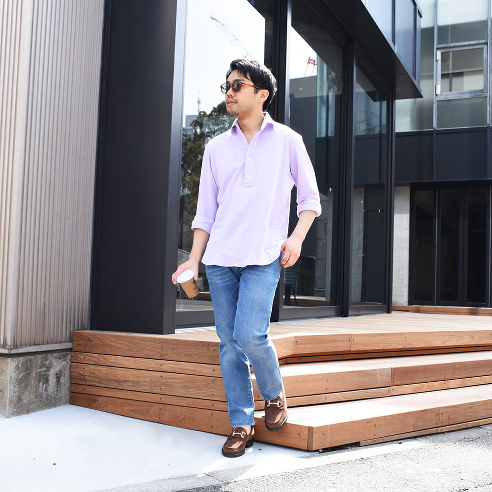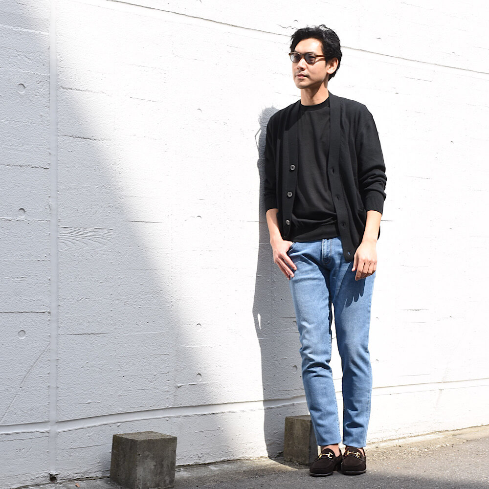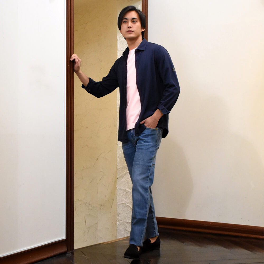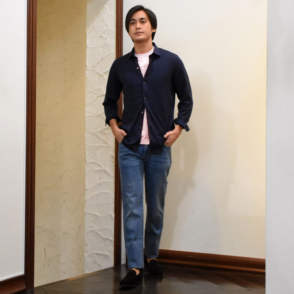 ・こなれ感を醸しつつ、清潔感のある色合い、そしてデニムらしい風合いにこだわり生地をセレクト。もちろんストレッチ性は抜群で通年着用可能な厚みです。