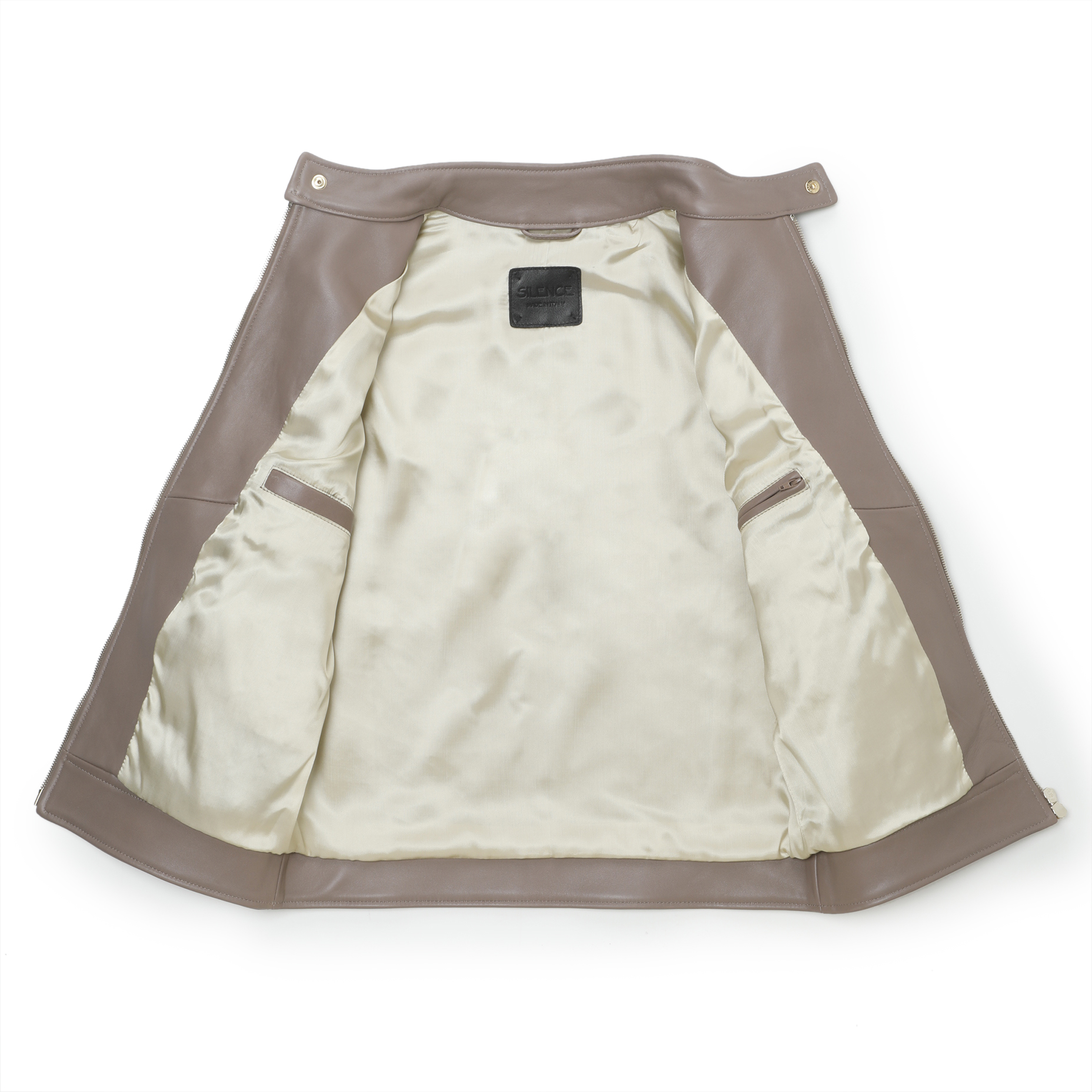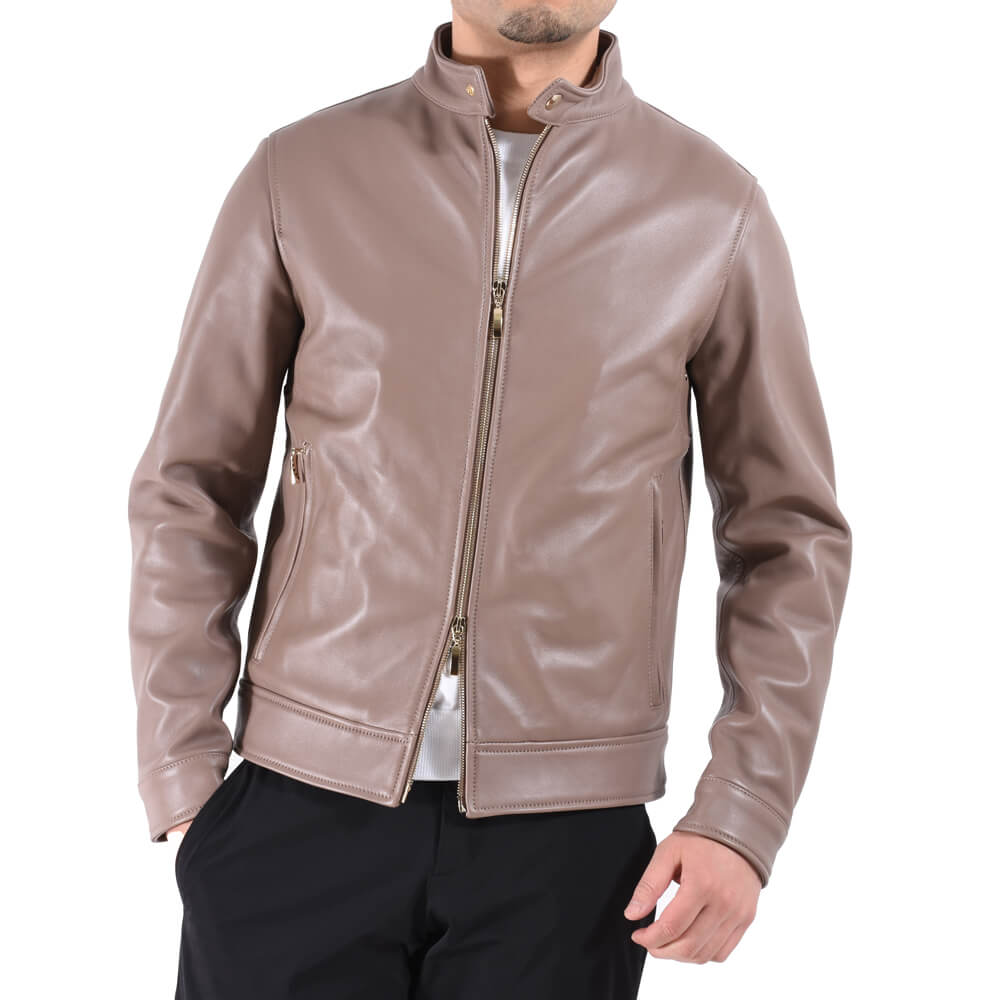 サイズ44を着用。細過ぎず緩すぎなフィッティングでジャストサイズでした。同ブランドのライダースは長すぎない袖丈となりますので、人によっては袖を詰めるお直しが必要がないところも、ポイントの一つです。何といっても色出し。綺麗なブラウンベージュはありそうで見つかりにくい貴重なカラーと言えます。加えて裏地のシャンパンゴールドが、よりラグジュアリーさを加速させます。