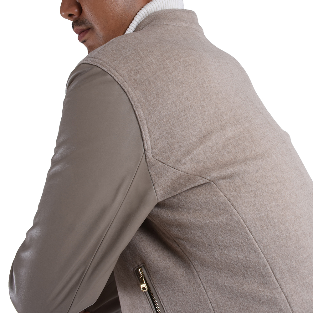 ・ナイロンとポリウレタンをブレンドすることで強度とストレッチ性を持たせた希少性の高いカシミア生地を採用。保温性と着心地の良さの両面を備えています(裏地もストレッチ)。