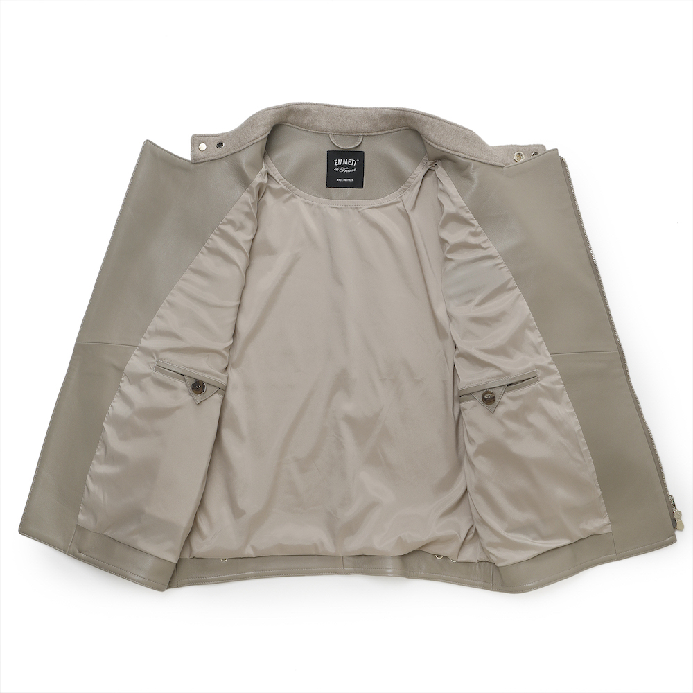・初登場となる「EMMETI(エンメティ)」のモデル”FIESOLE”は、通称セミダブルと呼ばれるモデル”JOSEPH(ジョセフ)”のアップデート版。デザインは”JOSEPH(ジョセフ)”と同じく、前合わせはダブル、襟元はスタンドのシングル仕様となっています。