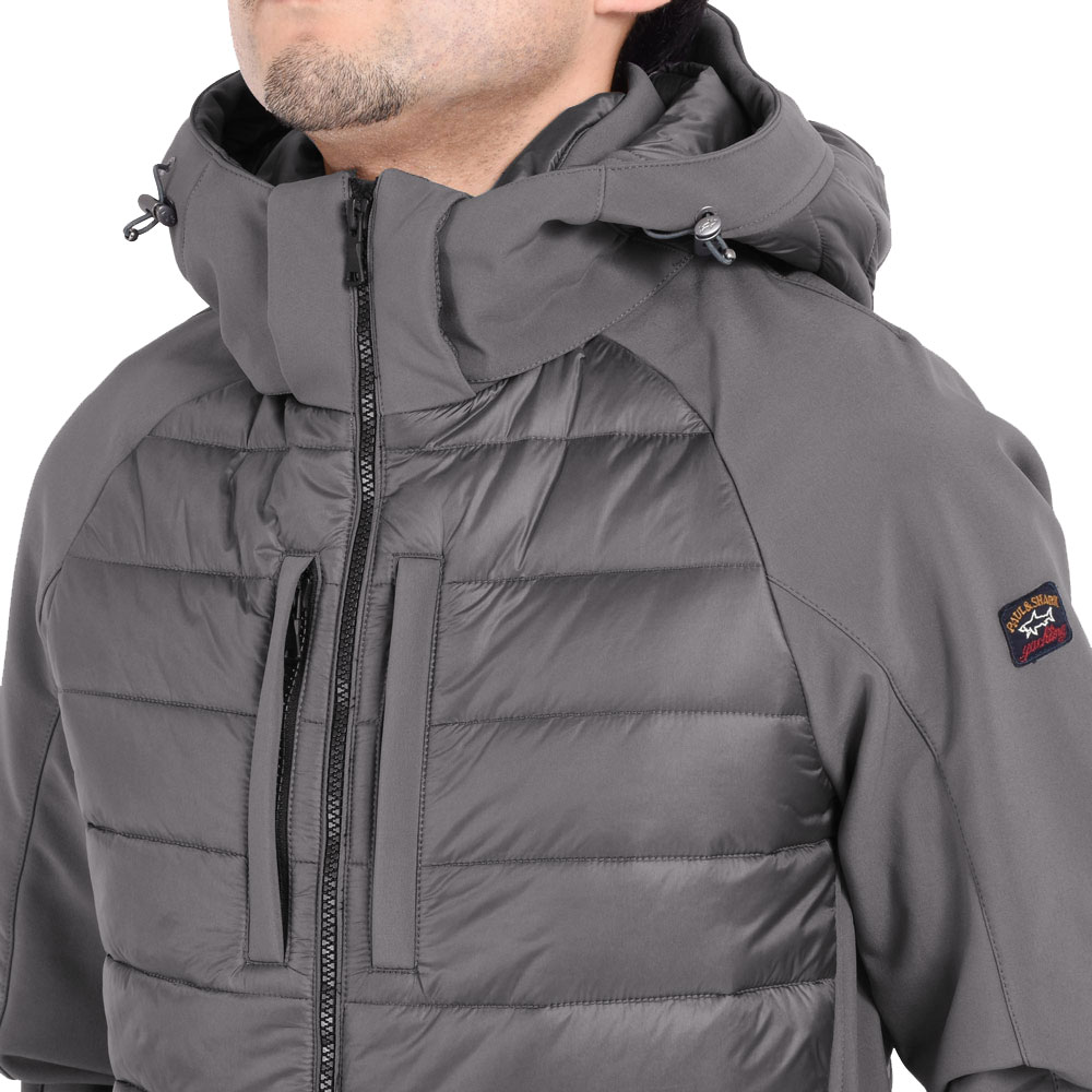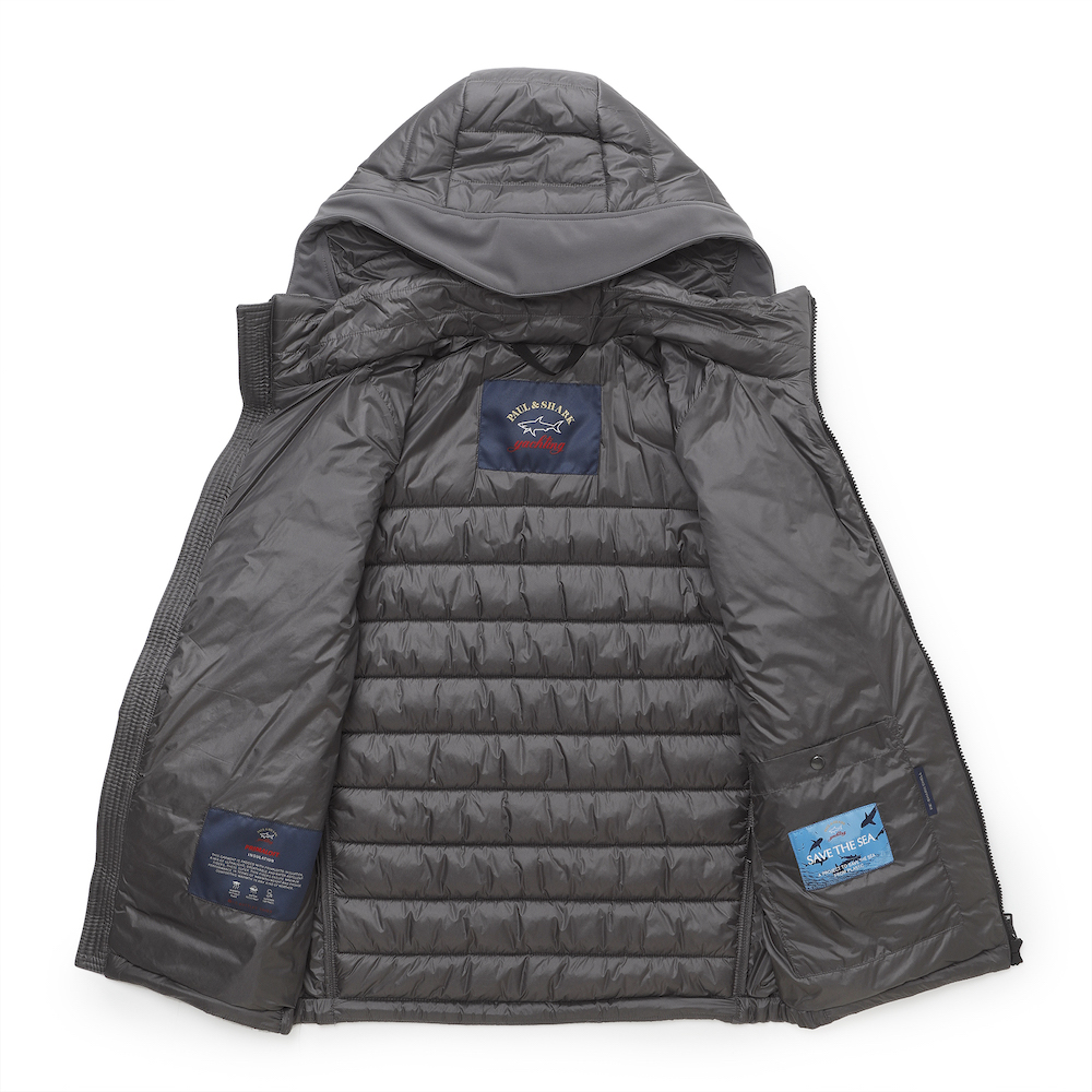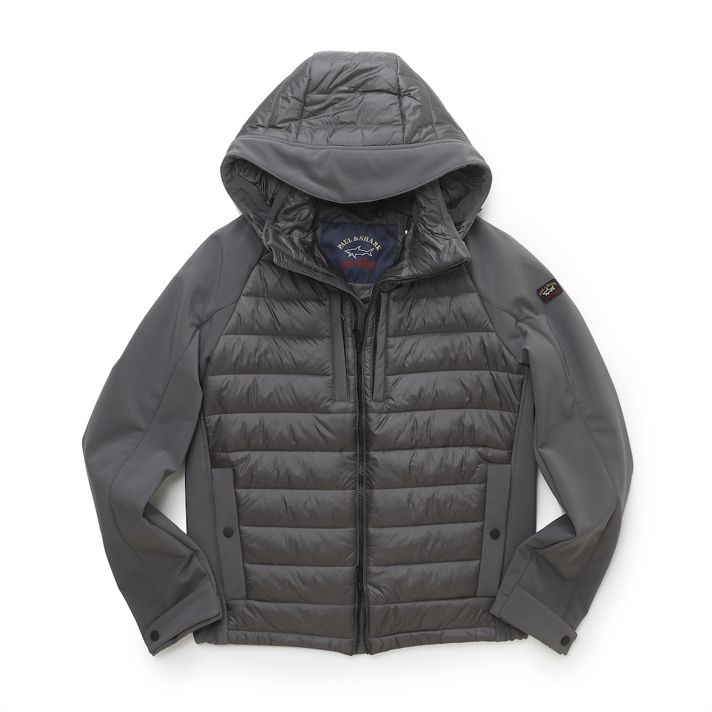 ・主な付属パーツは「PAUL & SHARK(ポールアンドシャーク)」のオリジナル。フードは取り外し可能で、外した際の見映えもスマートになるよう仕上げられており、細部まで抜かりはありません。ご自宅でケアできるのも使い勝手の良い点。