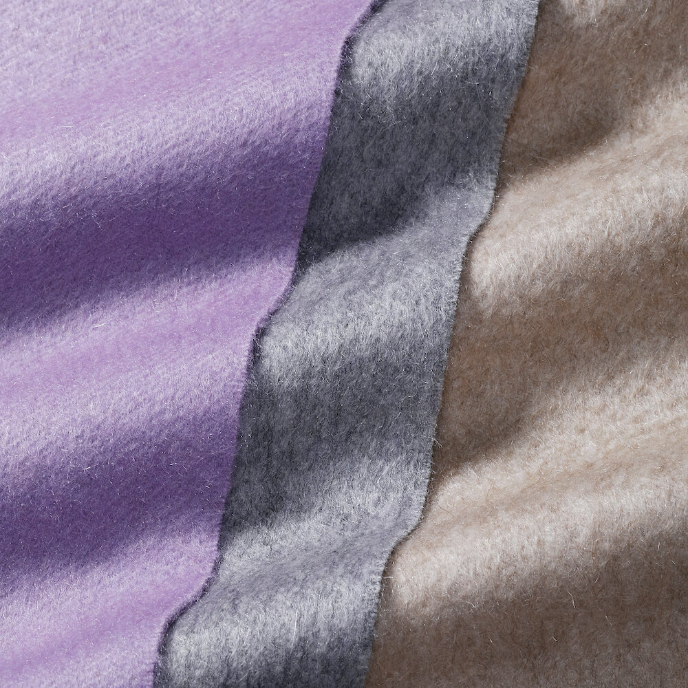 ・こちらはカシミア100%のビーバータイプ。その名の通り動物のビーバーのような毛並みを実現させるために、縮絨や剪毛などを行って毛を寝かせる工程(それをビーバー仕上げと言います)を経ています。独特の畝と艶やかな光沢が表現できる、とても滑らかで肌触り抜群の仕上がりです。