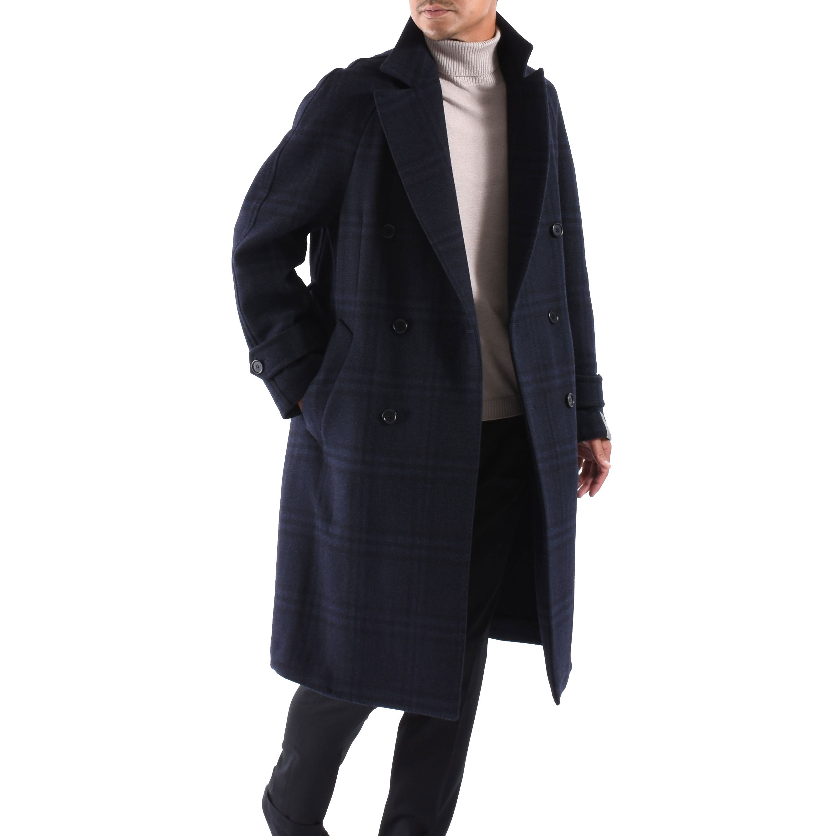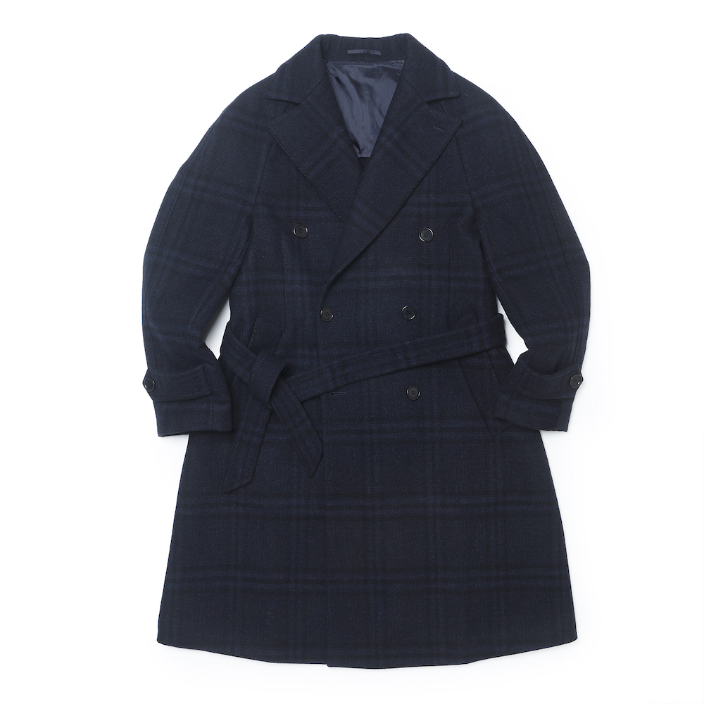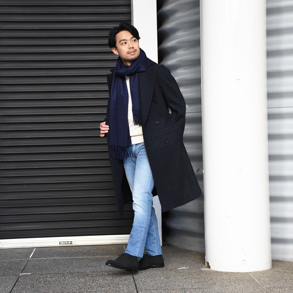 仕立てはもちろんなのですが、どっしりとした生地の厚みに控えめなチェック柄が秀逸。首への吸い付きがよく重さを感じさせないスペシャルなコートになります。