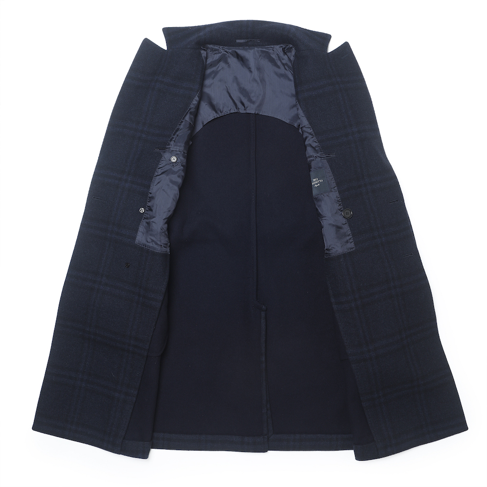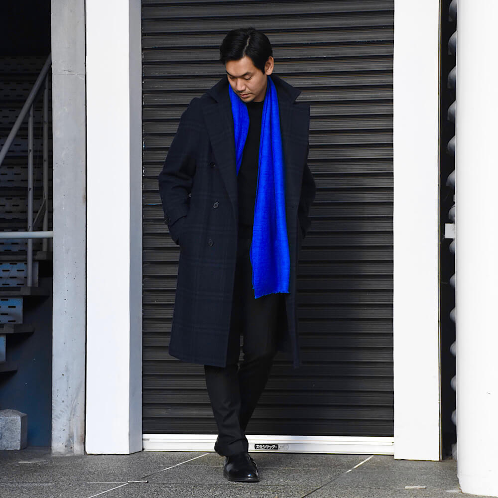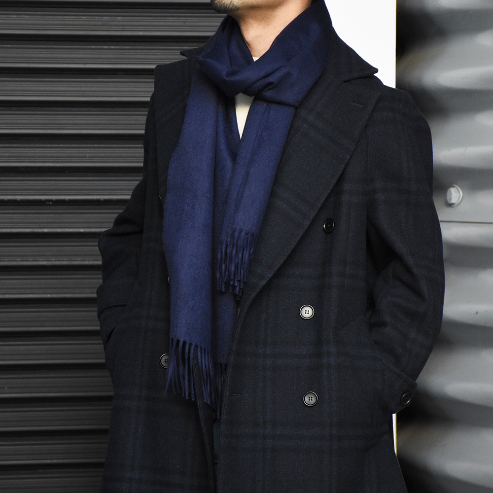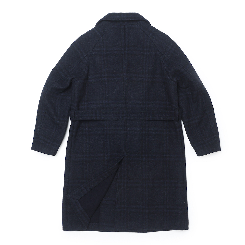 仕立てはもちろんなのですが、どっしりとした生地の厚みに控えめなチェック柄が秀逸。首への吸い付きがよく重さを感じさせないスペシャルなコートになります。
