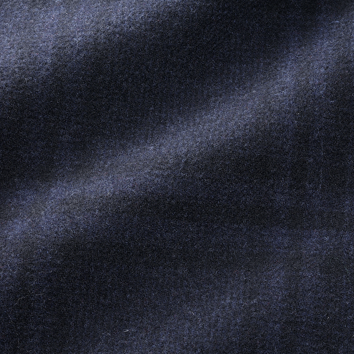 ・生地はウール100%のダブルフェイス。柔らかく快適な着心地で、目付は550グラム。うっすら起毛感がある柔らかなタッチ、程良く肉厚ながらダブルフェイスの特徴で着用時の重さもさほど感じさせません。控えめなチェック柄が相まってさっと羽織るだけで実に洒脱に写ります。