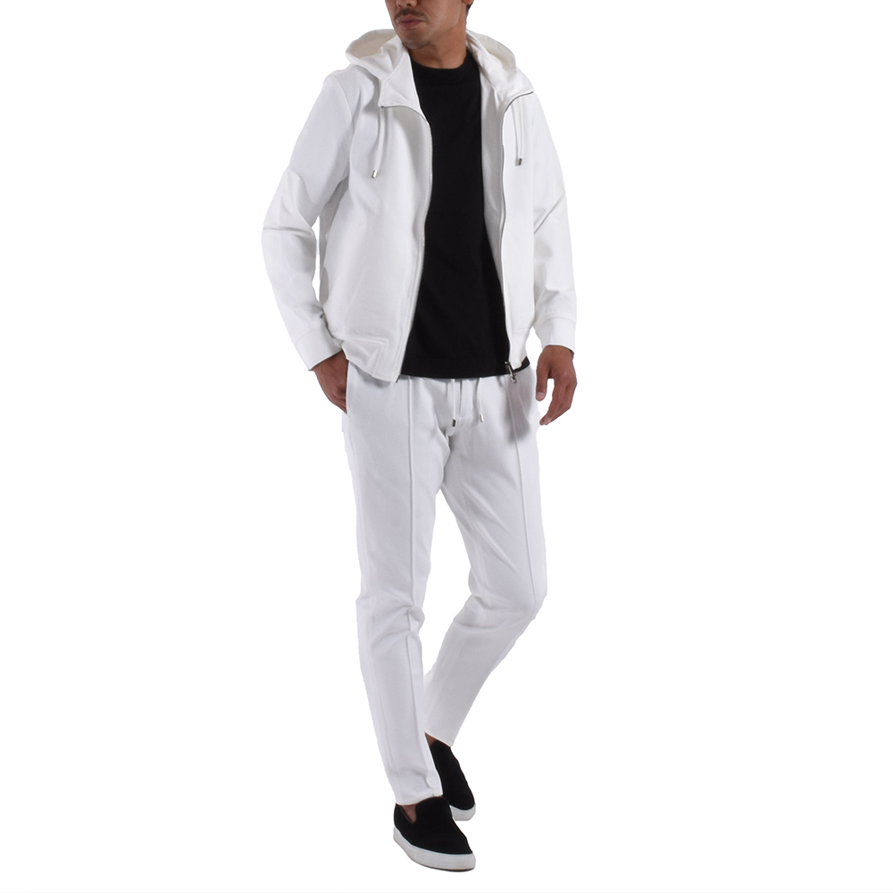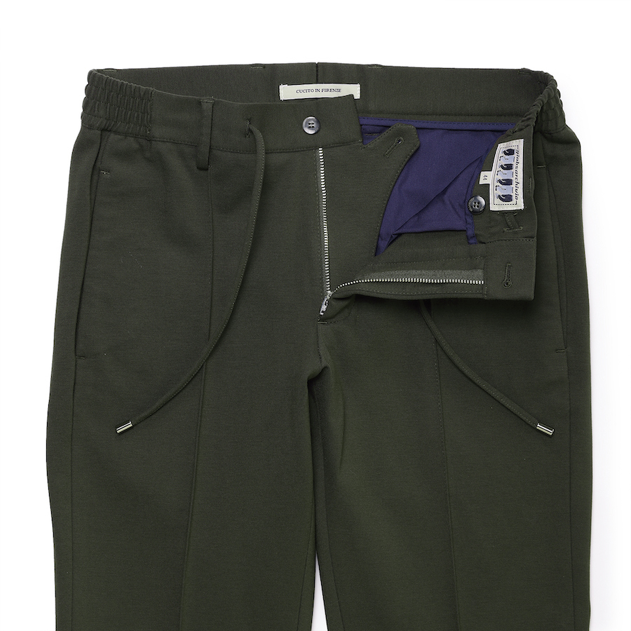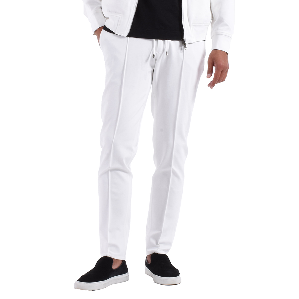 ・シルエットはスリムテーパード。ワタリ、膝、裾にかけてなだらかにかつ確実にテーパードしていくシルエットは「giabsarchivio(ジャブスアルキヴィオ)」ならでは。モードかつスポーティ。