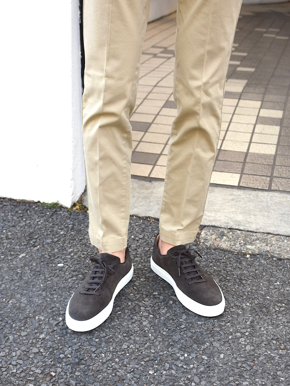 大変お待たせいたしました!2020年春夏から展開しているモデルGENOAがようやく再入荷しました!ローカット且つ内羽根仕様で、ドレス顔でもあるこちらのスニーカー。ジャケットスタイルでの着用はもちろん、カジュアルスタイルでも大人っぽさを演出してくれます! ローカット仕様のスニーカーなので、通常ローファーなどに合わせているパンツの丈感でも、裾がもたつく事なく履くことができます。